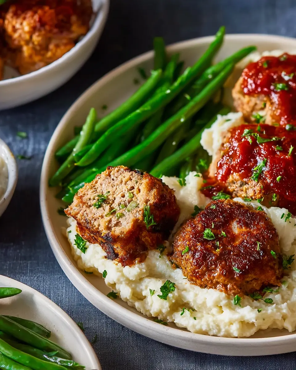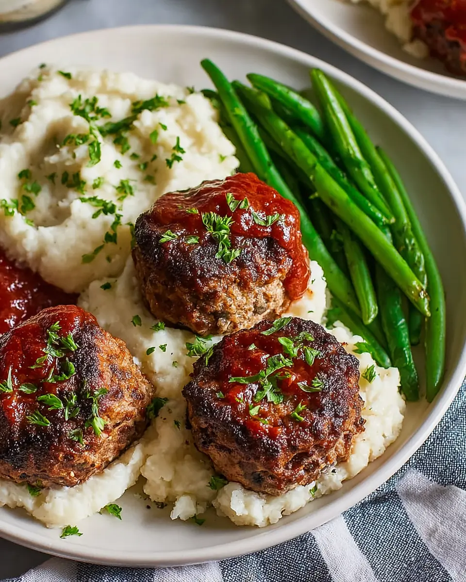 The creamy whipped cauliflower complements the hearty mini meatloaves perfectly, providing a smooth balance to the meal. If you're looking for an extra crunch, toss some toasted nuts or seeds into the green beans for added texture. You might even consider offering a side of homemade garlic bread or a light garden salad for some extra freshness. Want a zing? A splash of lemon juice enhances the flavors beautifully! Check out this simple salad recipe to add a bright finish.