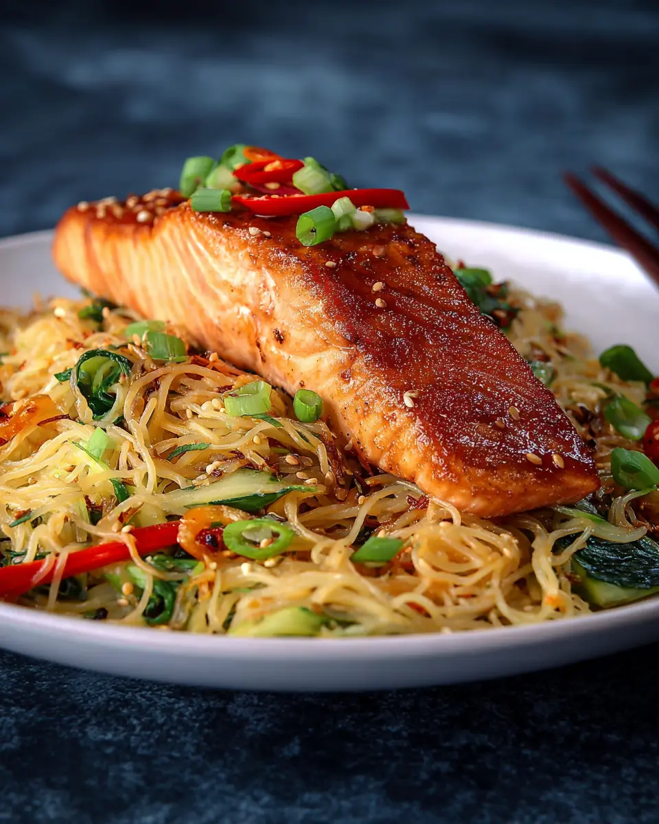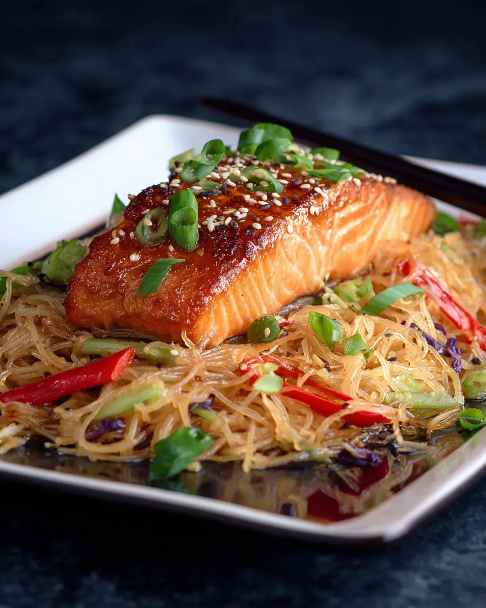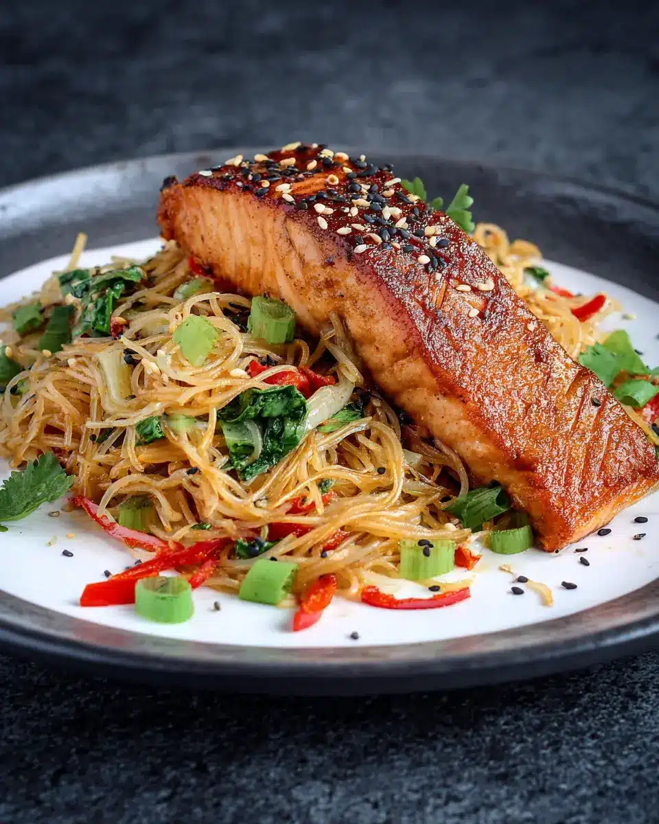 In conclusion, Asian Salmon with Chilli Noodles is a quick, delicious option for any home cook. With its vibrant flavors and healthy ingredients, it’s sure to please. Embrace this recipe for an effortless meal that’s both nourishing and satisfying, perfect for busy weeknights or casual entertaining.