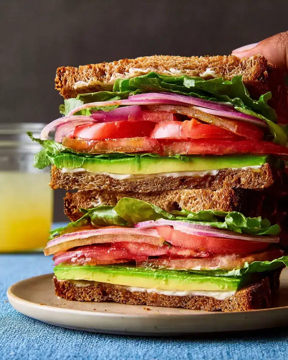 Absolutely! Just omit the mayonnaise and use a plant-based alternative. You can even swap the turkey bacon for a crispy vegan version, making this avocado lettuce tomato sandwich both delicious and entirely plant-based. Check out this vegan mayonnaise recipe for a homemade option!