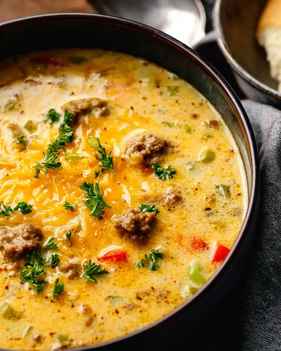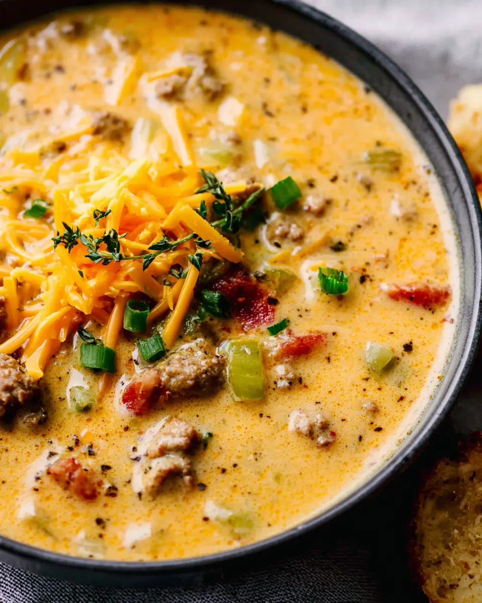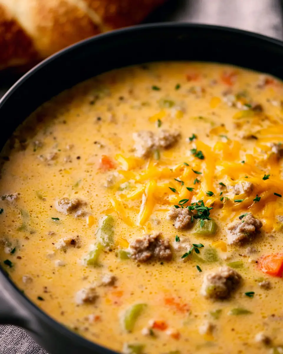 Loaded with 38 grams of protein, this soup is a great option for those seeking to build muscle or simply keep full. The combination of ground beef and cheese makes it a protein powerhouse that sustains energy levels throughout the day.