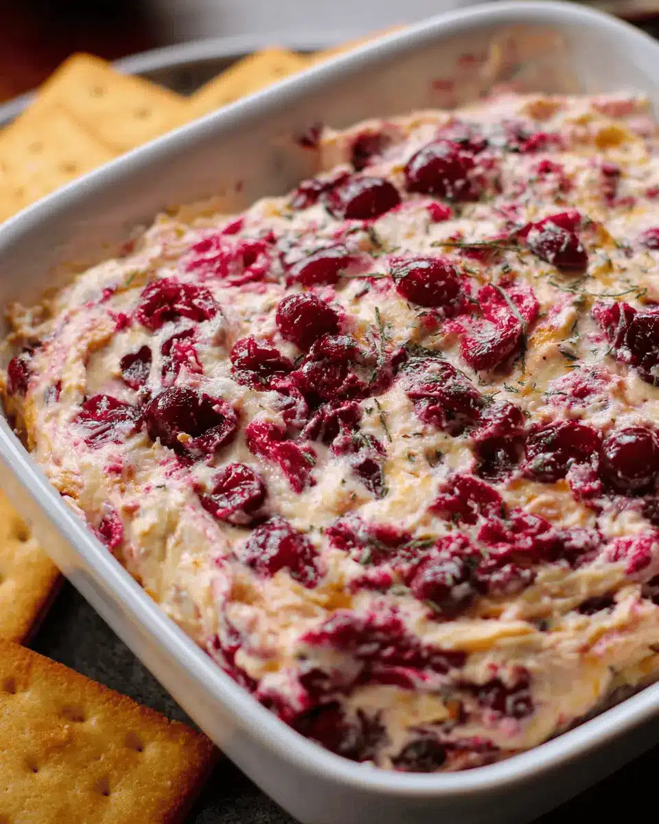 Once it’s done, serve your Baked Cranberry Cream Cheese Dip hot with your favorite crackers, bread, or pita chips. Your guests (or just you!) will be in for a real treat. Enjoy every creamy, cheesy bite!