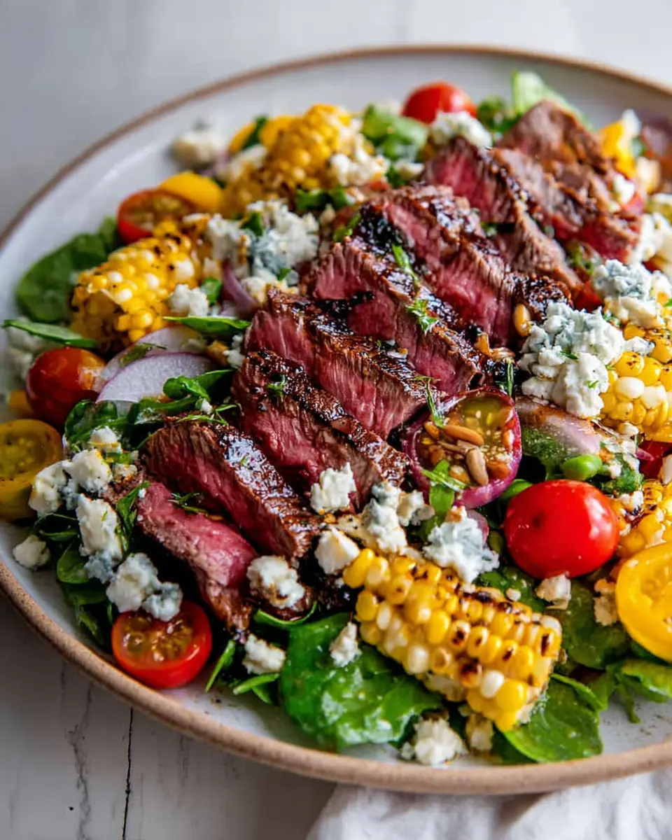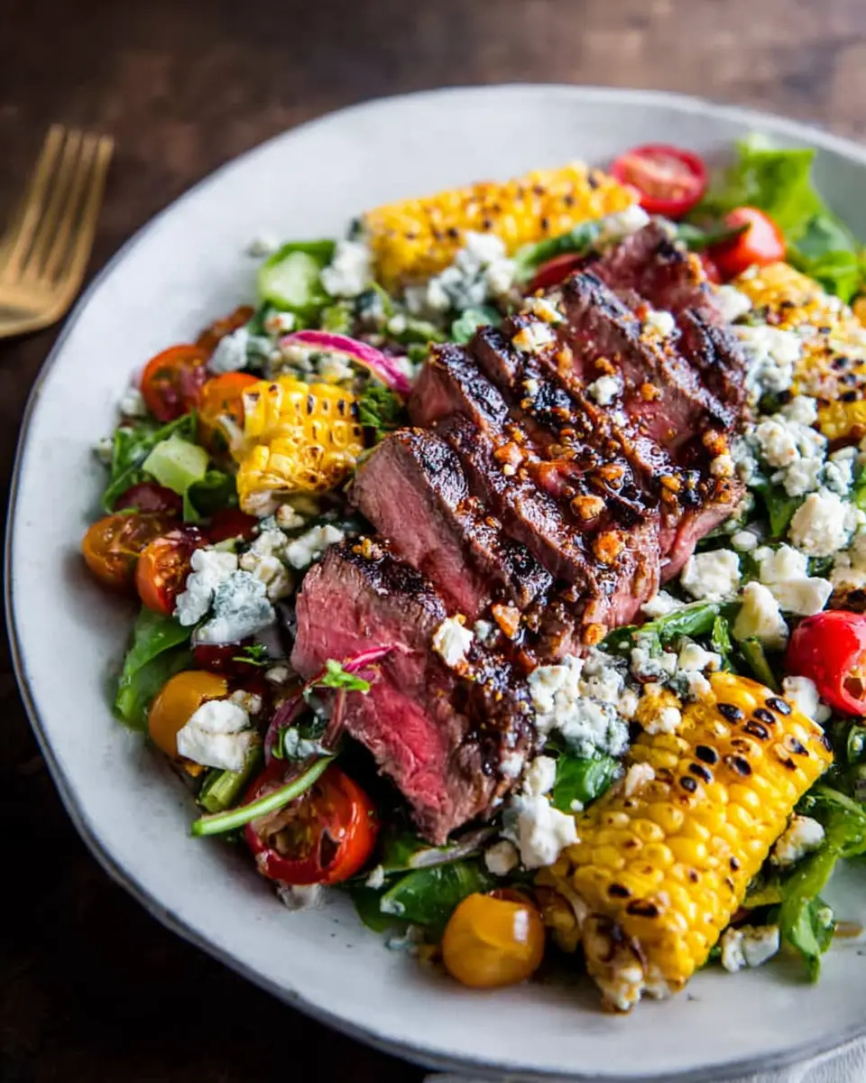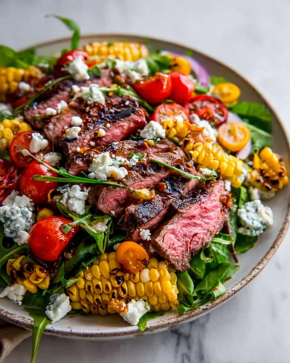In summary, the balsamic steak gorgonzola salad with grilled corn is a delightful summer dish that combines rich flavors with refreshing greens. Perfect for busy nights or weekend gatherings, this recipe is quick, satisfying, and perfect for impressing guests. Enjoy the fresh tastes of summer in every bite!