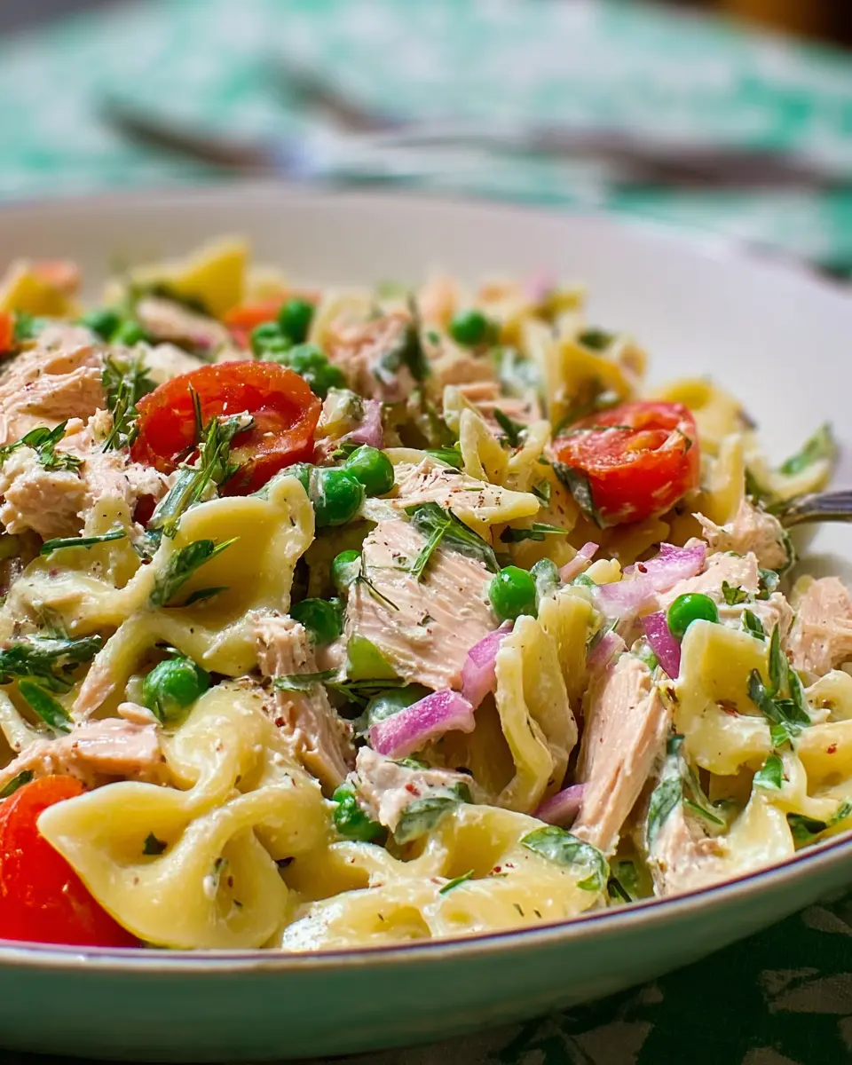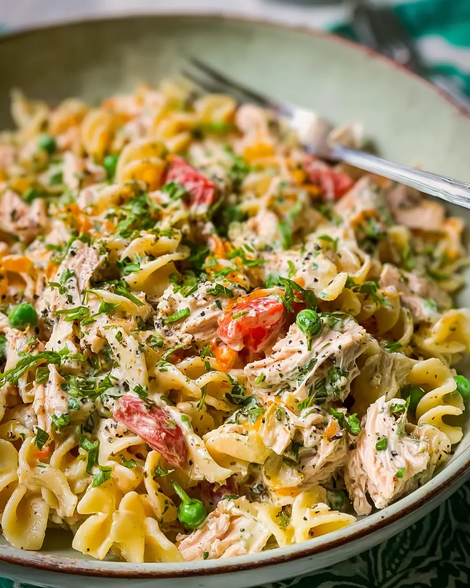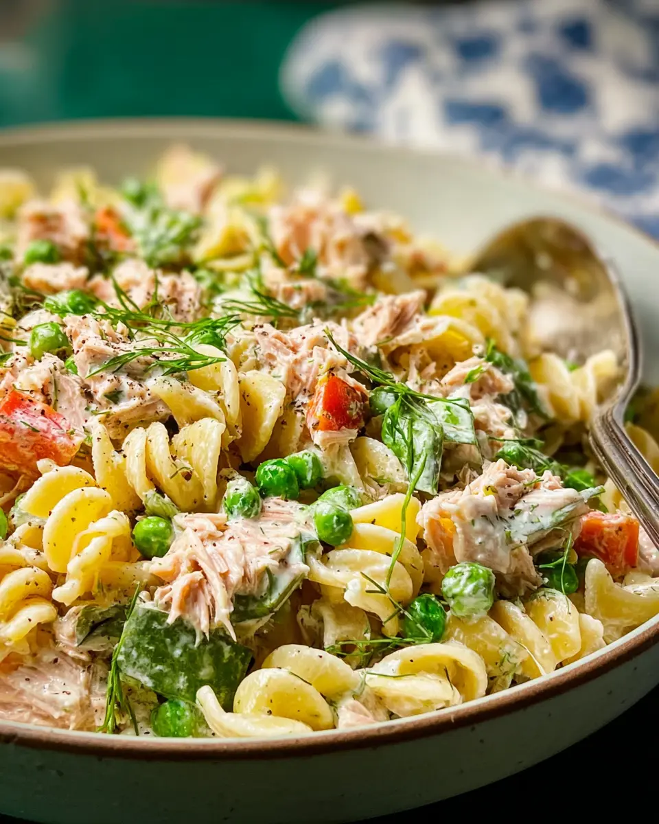 If you’re aiming to make this salad fit specific dietary needs, there are plenty of substitutes! For a lighter version, use low-fat mayo or a plant-based alternative. You can also swap out the pasta for whole grain or gluten-free varieties. Consider replacing the tuna with chickpeas or white beans for a vegetarian twist. Lastly, feel free to experiment with the veggies—sun-dried tomatoes or bell peppers work wonderfully!