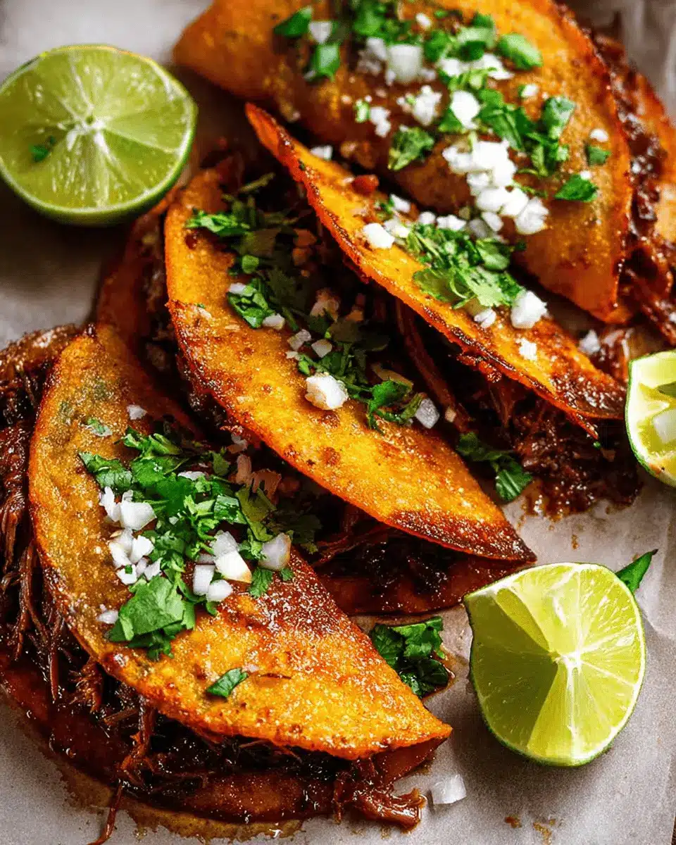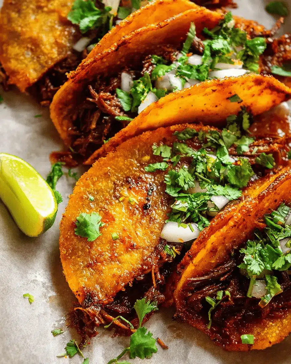 To achieve that irresistible crispiness in your birria tacos, pan-fry them in a bit of the reserved "Birria Oil." This oil not only adds flavor but also creates a beautiful golden crust. Remember to heat your tortillas in the oil before stuffing to seal in the flavor and maintain that crunch!
