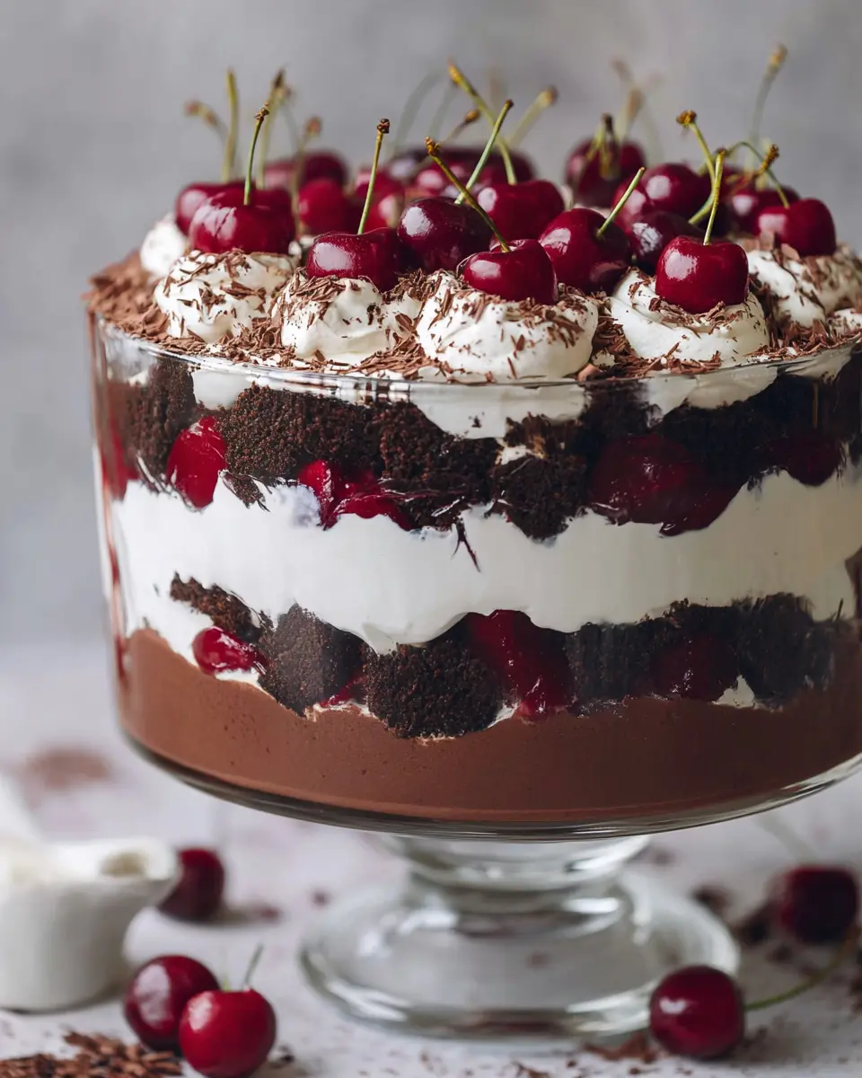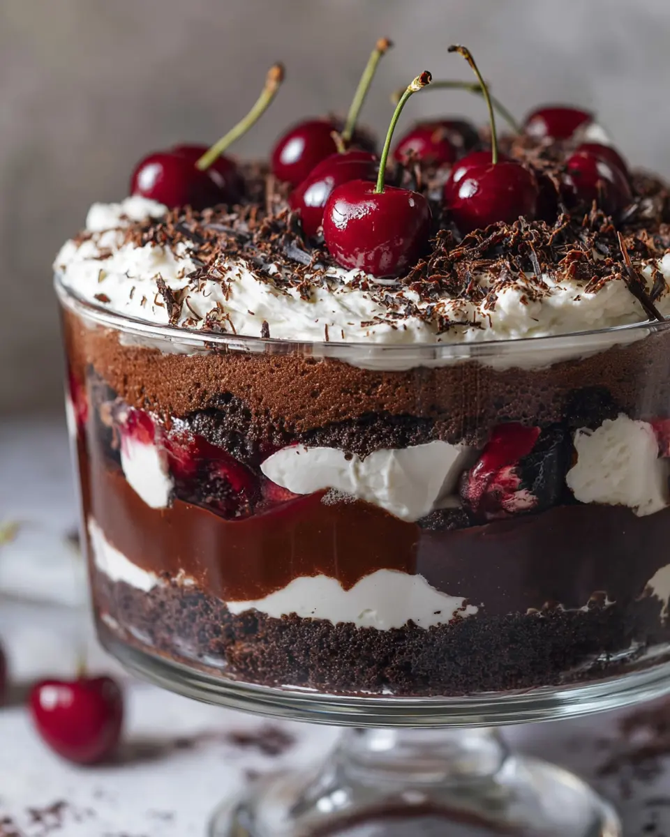 A Black Forest Trifle is a delightful dessert that layers rich chocolate cake, luscious cherry filling, creamy pudding, and fluffy whipped cream in an elegant bowl. Originating from the traditional German Black Forest cake, this trifle transforms those classic flavors into a visually stunning and easy-to-serve dessert. The result is a mouthwatering combination of textures and tastes that is sure to impress your family and friends.