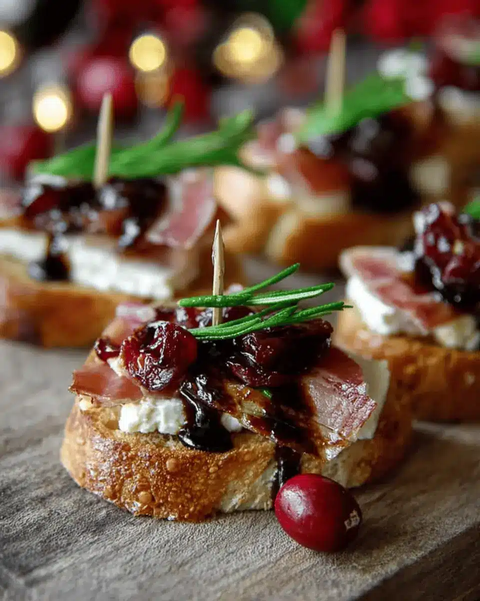 Absolutely! You can prepare your Brie, Cranberry and Prosciutto Crostini ahead of time. Simply toast the baguette slices, then store them in an airtight container once they’ve cooled. You can also make the balsamic glaze in advance. Assemble your crostini right before serving to ensure they stay crunchy.