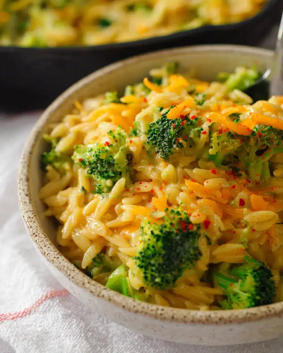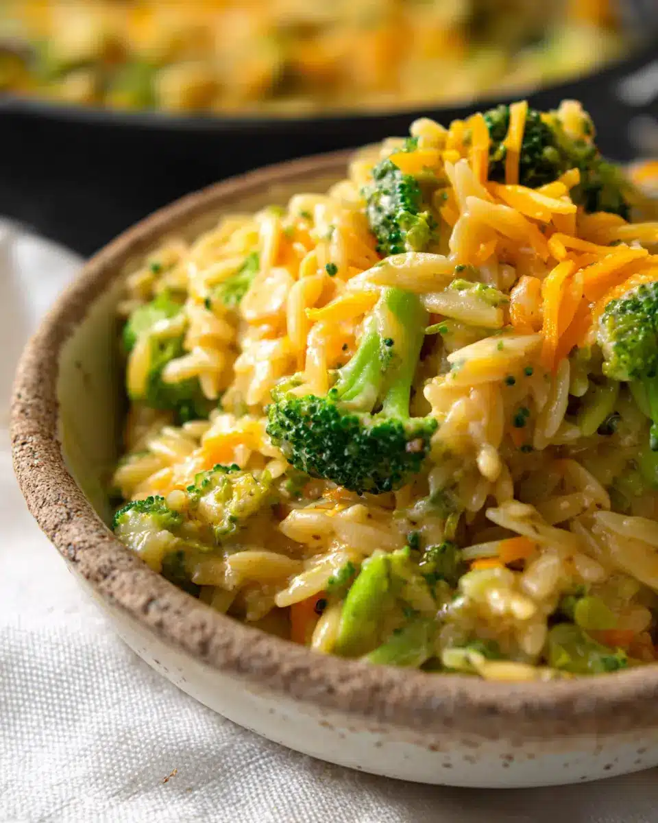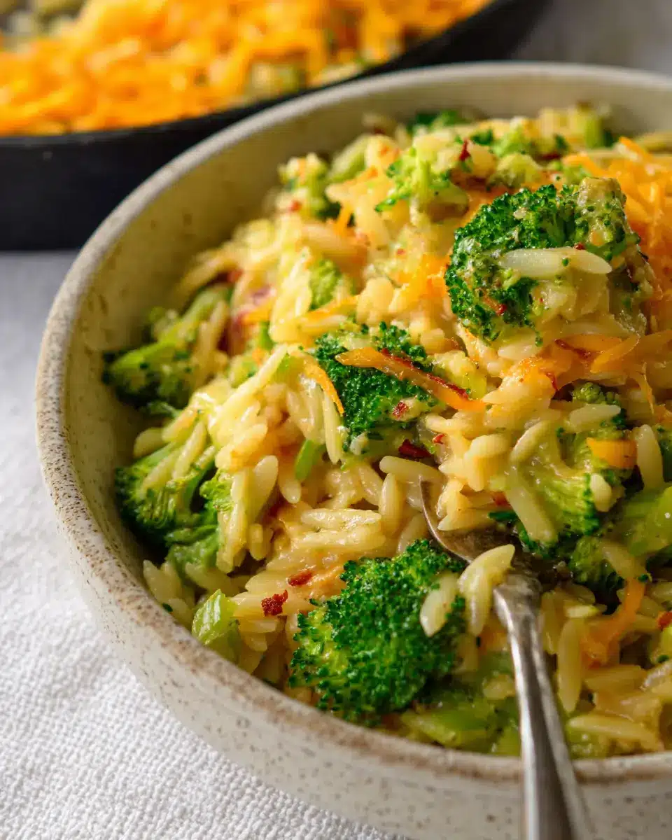 In just 25 minutes, you’ll have a satisfying, warm bowl of broccoli cheddar orzo ready to serve. Perfect for a busy weeknight or an easy meal prep option! Feel free to check out this article for tips on how to incorporate more veggies into your meals.