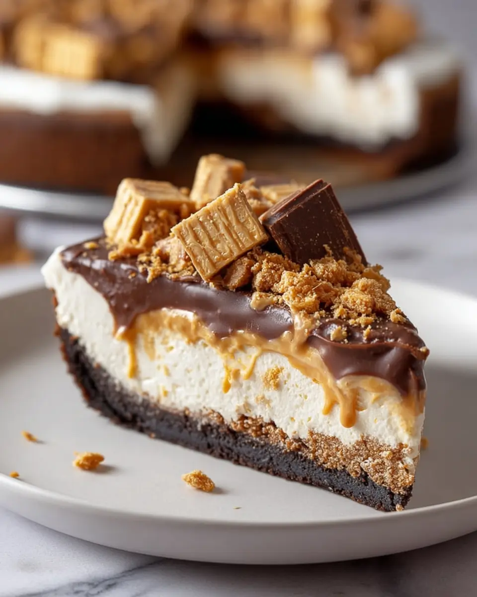 If you're a fan of rich flavors, try the Peanut Butter Cup Cheesecake Variation. Simply swap out the chopped Butterfingers for your favorite peanut butter cups. The creamy cheesecake base pairs perfectly with the added crunch of those delightful cups. To amplify the peanut butter essence, mix some chopped cups throughout the filling and on top of your whipped cream garnish. This adds a delicious twist to the classic Butterfinger cheesecake delight recipe, making it a hit amongst peanut butter lovers!