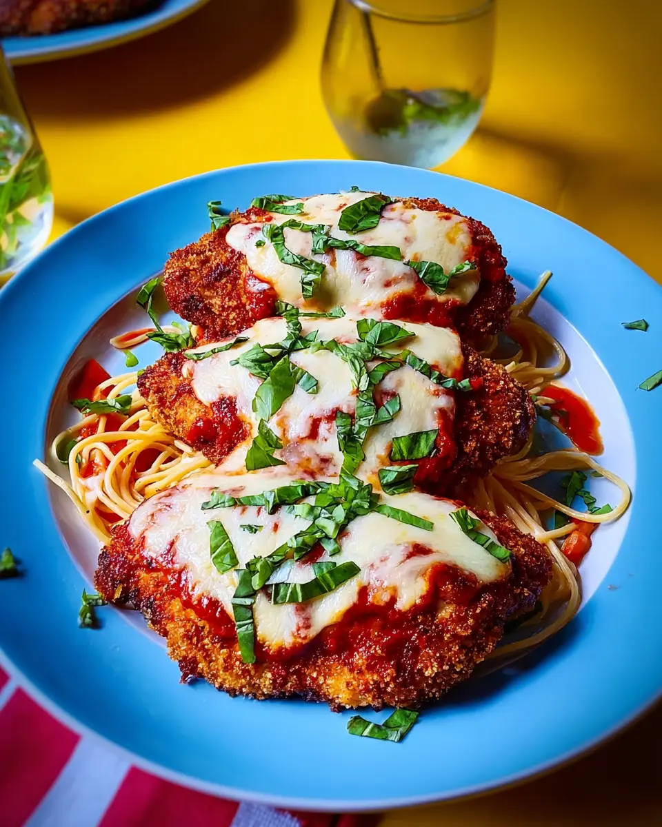 Crowd-pleaser: This dish hits all the right notes—crunchy chicken, rich tomato sauce, and gooey cheese come together for a satisfying meal. It's perfect for cozy weeknights or special occasions.