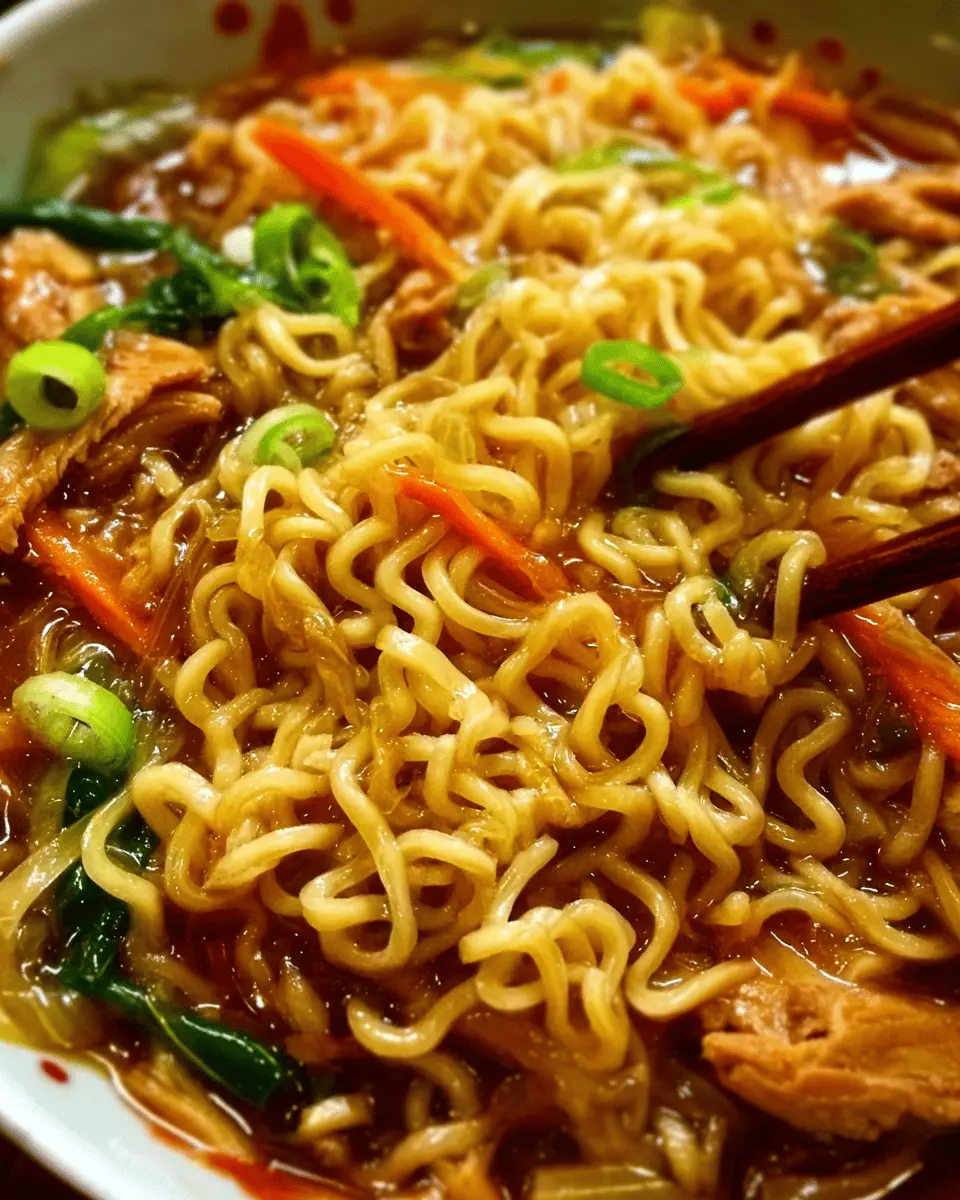Achieving that perfect noodle texture is simple—don’t overcook them! Cook the ramen noodles according to the package's instructions, usually around 2-3 minutes. Adding them directly to the chicken and vegetable mixture along with enough water ensures they soak up all those savory flavors. If you feel the noodles are getting too soft, promptly remove them from heat. Serve immediately to maintain their springy texture! For even more noodle know-how, explore Noodle-in for expert tips.
