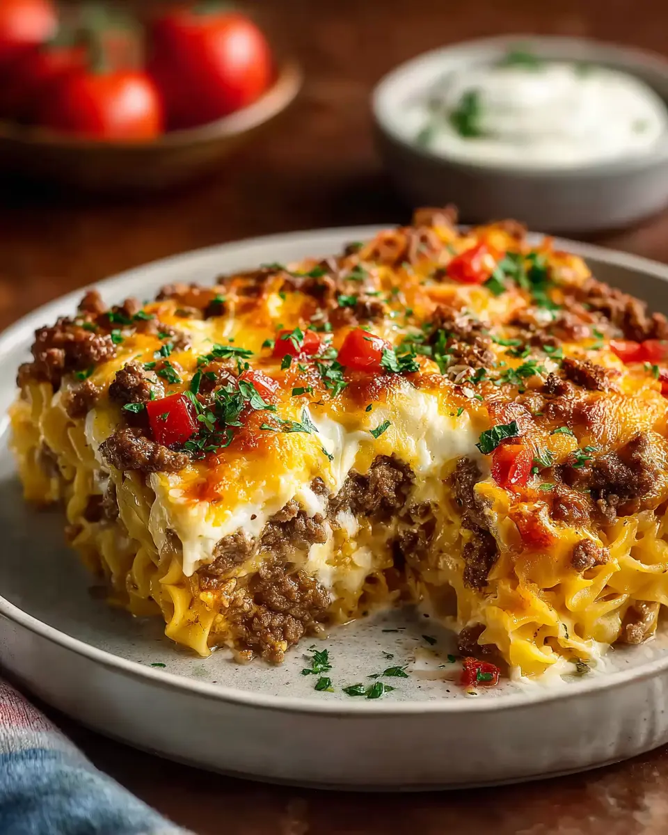 In conclusion, this Comforting Hamburger Casserole with Cream Cheese is more than just a meal; it's a warm embrace on a plate. Perfect for busy weeknights, its rich flavors and creamy texture make it a family favorite. Try it out, and enjoy the smiles at your dinner table!