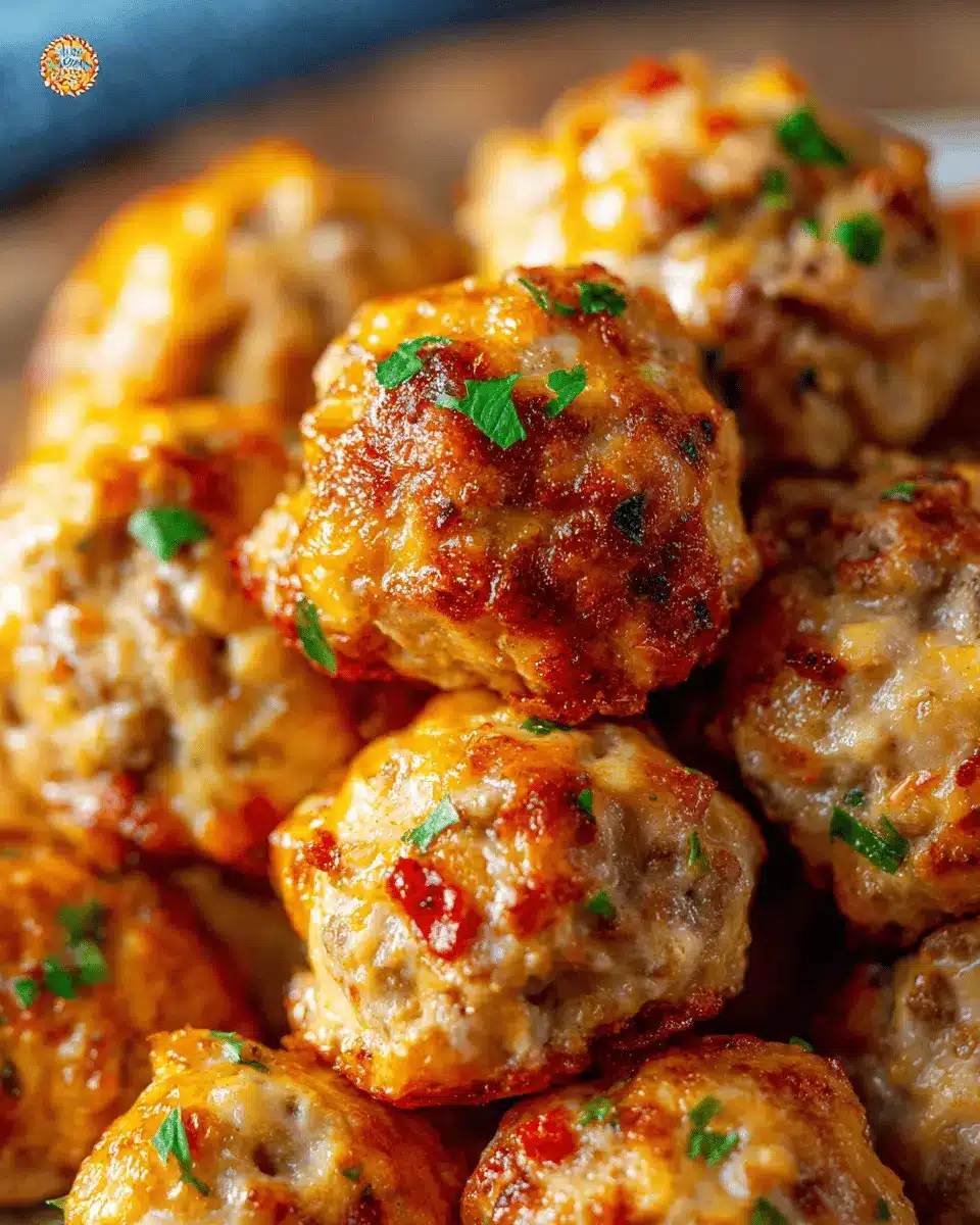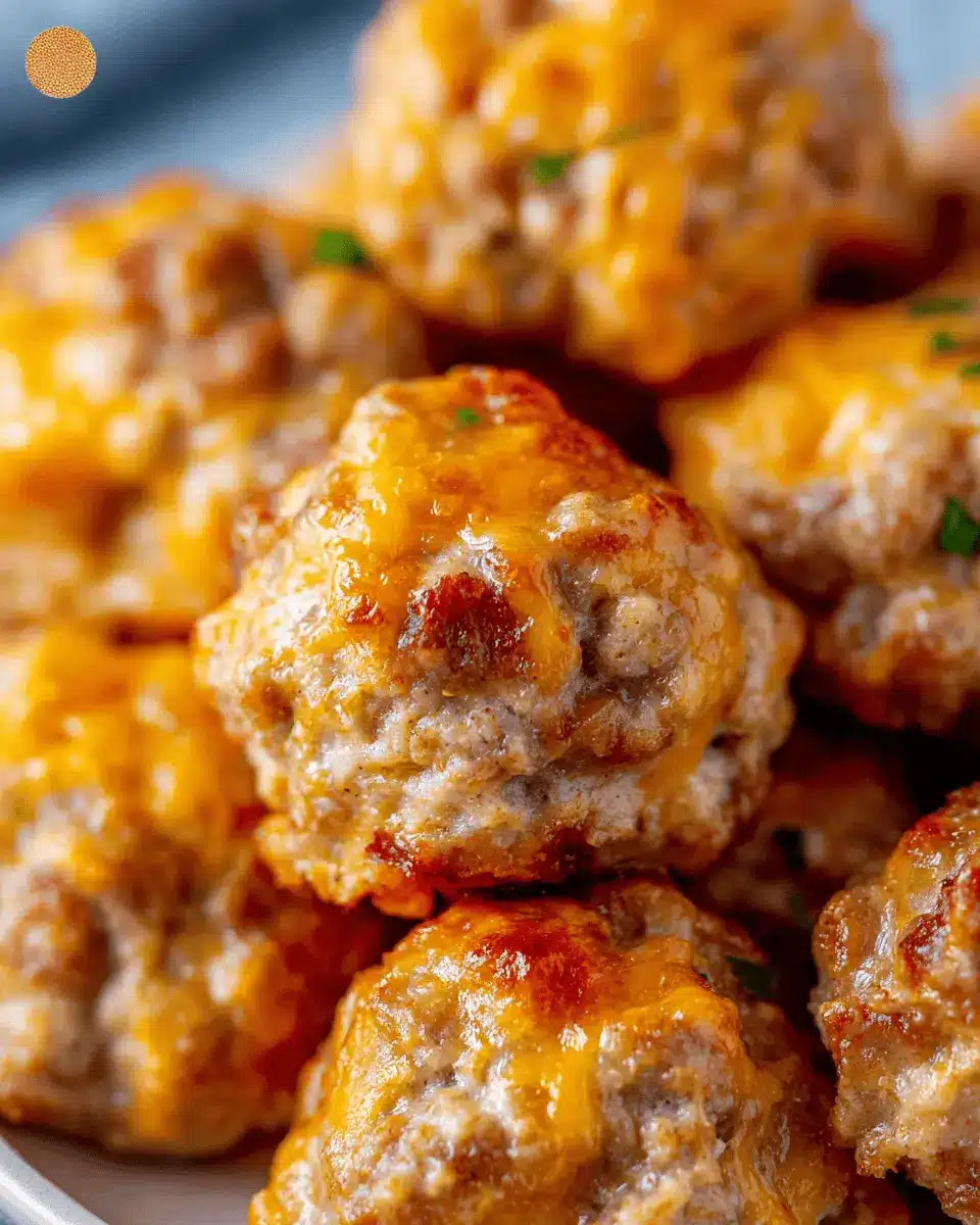 Before baking, pop the baking sheets in the refrigerator for about 10 minutes. This step helps prevent your sausage balls from spreading too much in the oven. After chilling, bake them for approximately 25 minutes or until they’re golden brown and the cheese is bubbly. The wonderful aroma filling your kitchen will be hard to resist!