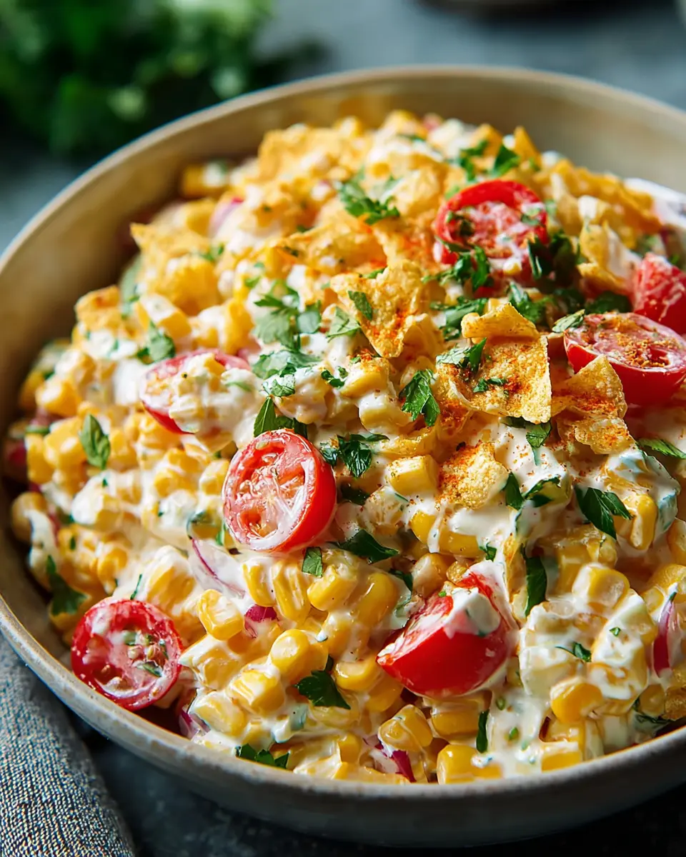 Absolutely! You can mix the creamy corn salad ingredients ahead of time, but keep the corn chips separate until you’re ready to serve. This will ensure that they stay crunchy and delicious, providing that perfect contrast to the creamy base. For the best flavor, try to prepare the salad at least a couple of hours before serving to allow the flavors to meld!