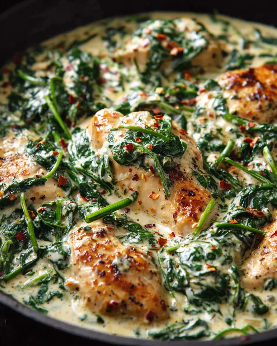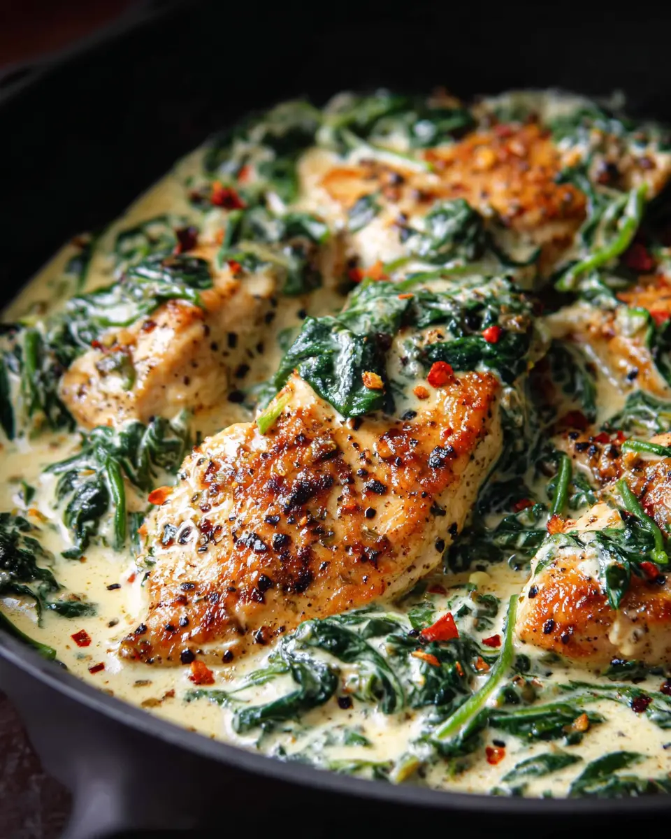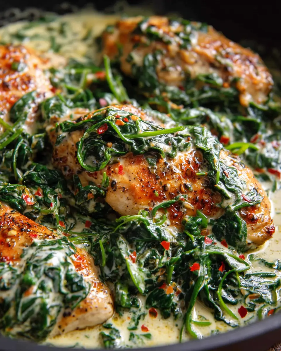Absolutely! You can prep the chicken and creamy spinach sauce separately earlier in the day. Just store them in the fridge. When you’re ready to serve, reheat in a skillet over low heat until everything is warmed through. This is a great time-saver on busy weeknights!