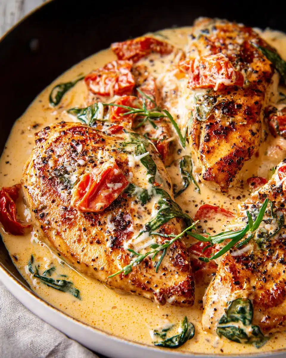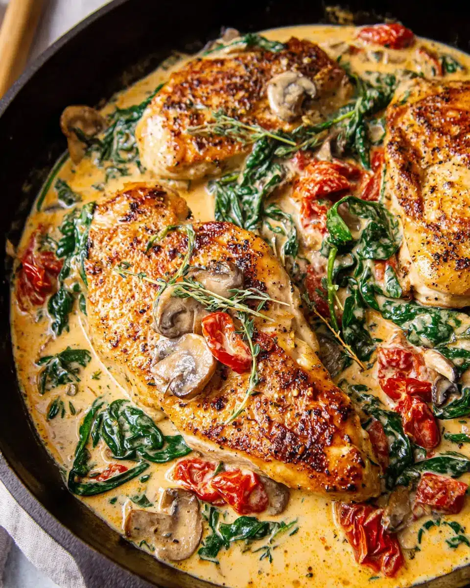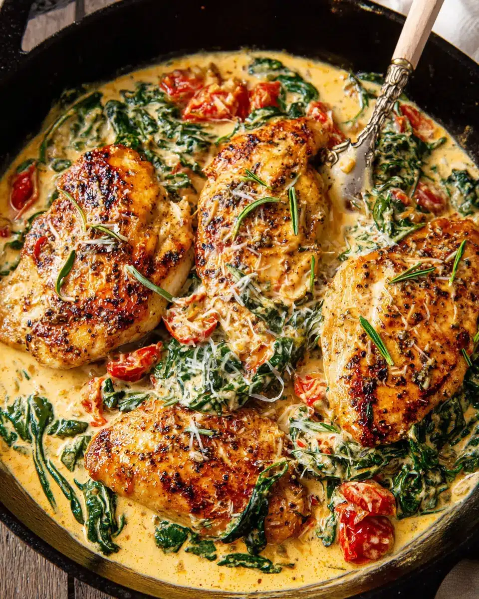 In summary, the Creamy Tuscan Chicken is not just a meal; it’s a culinary experience bursting with vibrant flavors. Perfect for busy weeknights or impressing guests, this dish combines succulent chicken with fresh spinach and juicy tomatoes, all enveloped in a luxurious cream sauce. Try it tonight!