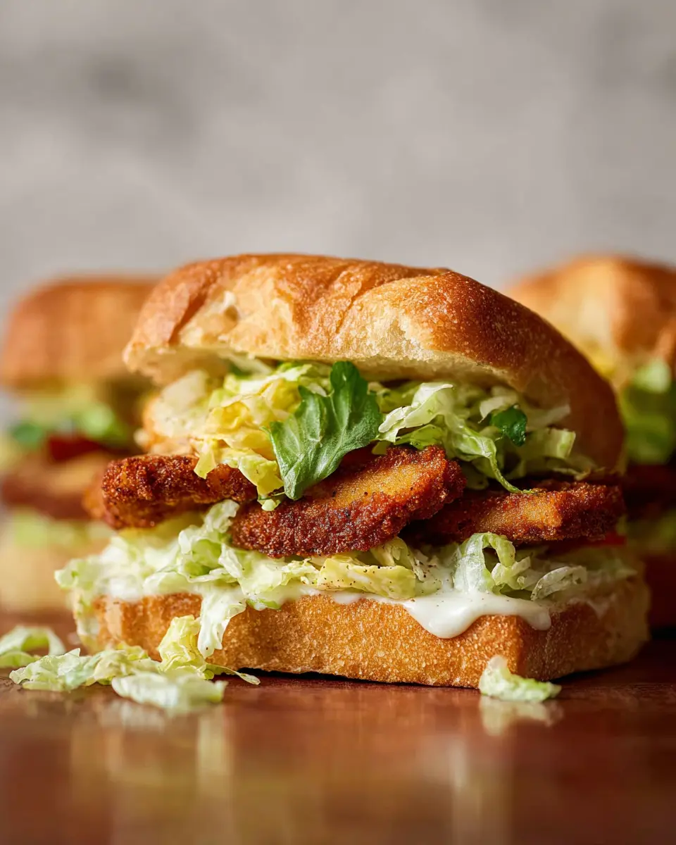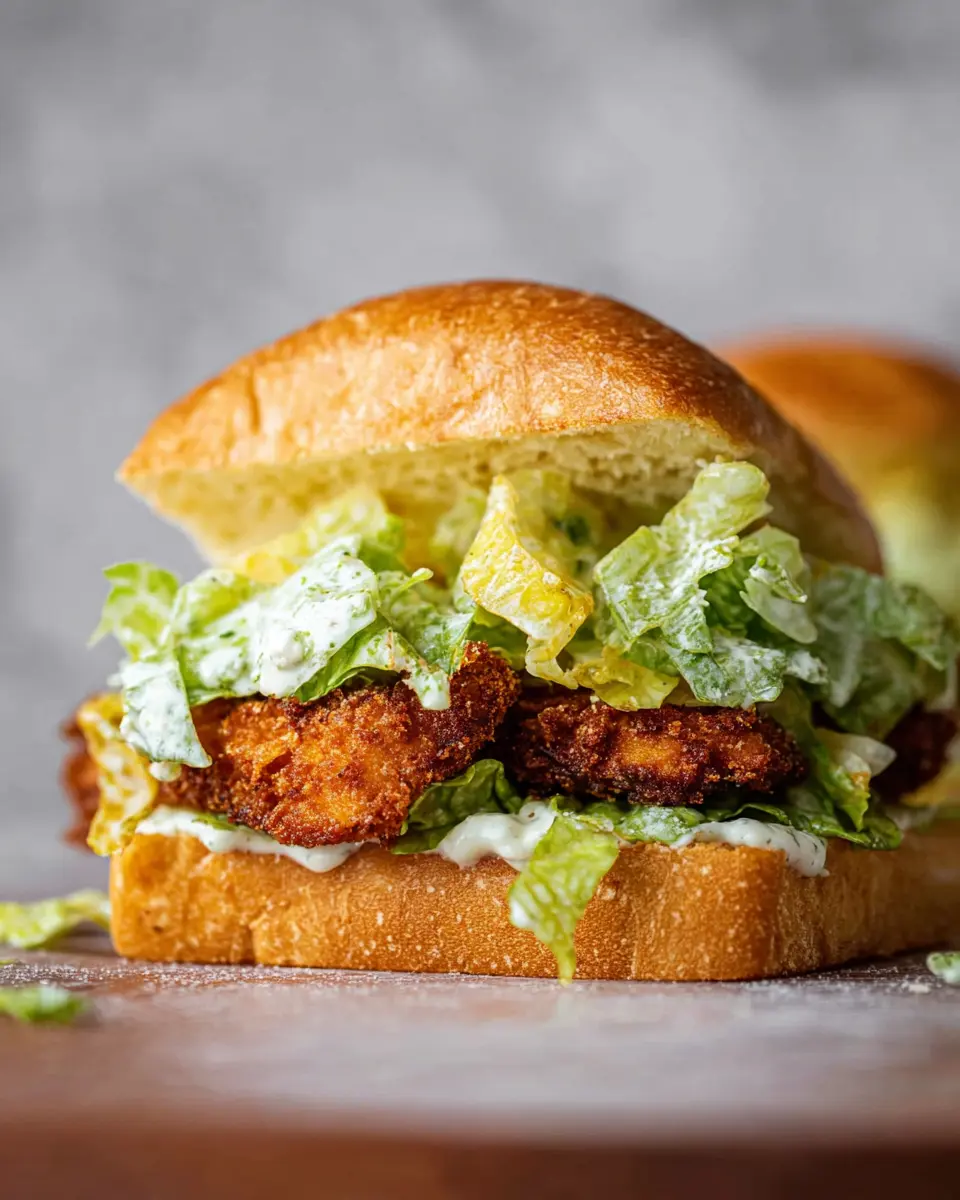 These sandwiches are perfect for gatherings, quick lunches, or dinner parties, as they cater to various palates. Imagine biting into a golden, crispy chicken cutlet layered with a zesty, vibrant Caesar salad all nestled between a buttery brioche bun. It's not just a sandwich; it’s an experience that everyone will rave about!