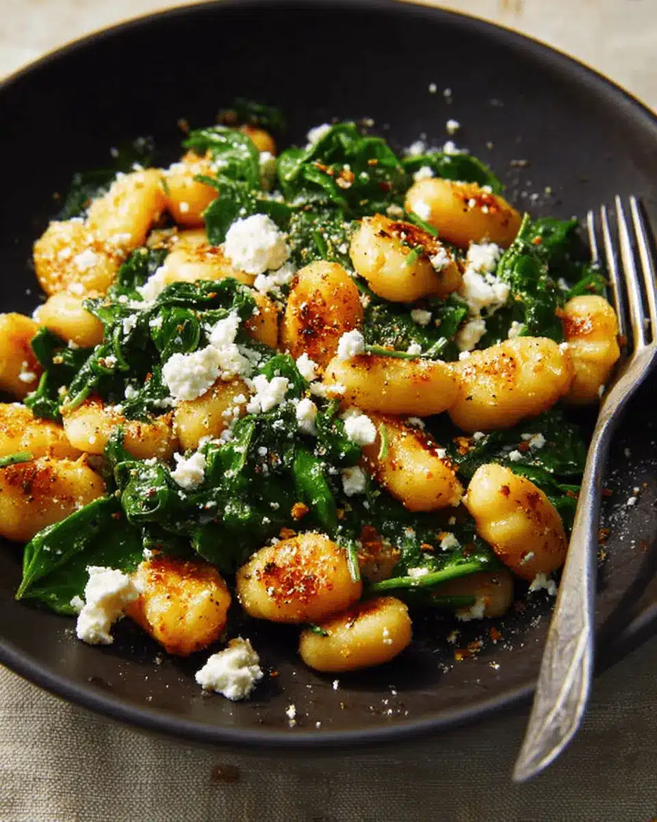 Introduction to Crispy Gnocchi with Spinach and Feta