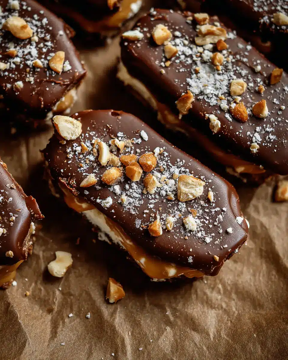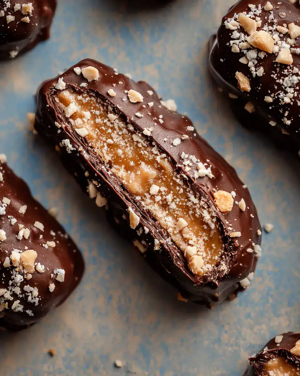 Next, it’s time to fill those dates with a heavenly mixture of peanut butter and crushed peanuts. Take a half spoonful of creamy peanut butter and place it inside each opened date. You don’t have to be precise—after all, a little extra peanut buttery goodness never hurt anyone! After that, sprinkle in a pinch of crushed peanuts for that satisfying crunch. This combination not only enhances the flavor but also offers a wonderful texture contrast in your Date Snickers.