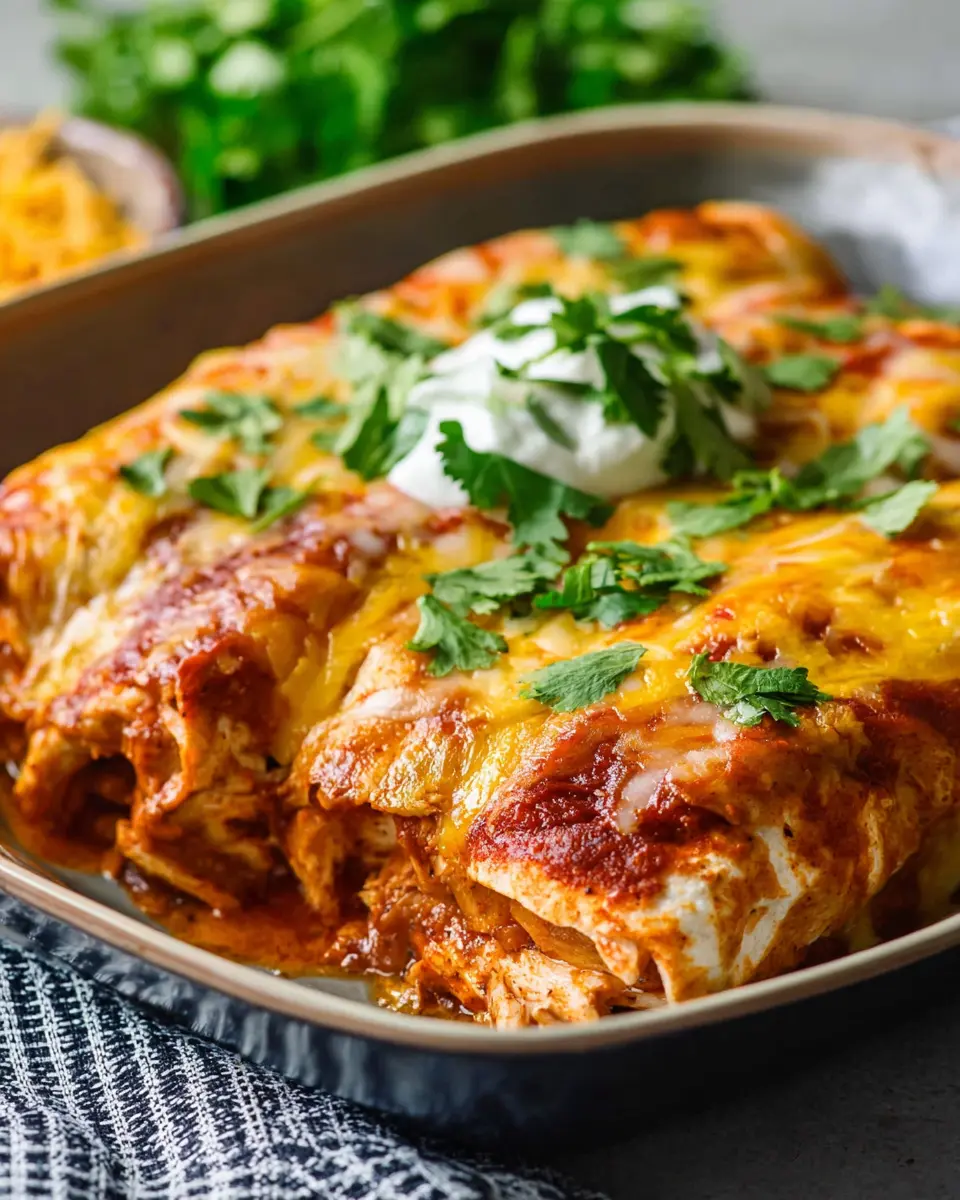After baking, serve your easy chicken enchiladas hot, possibly with a side of sour cream, guacamole, or fresh cilantro for an extra burst of flavor. Trust me, these enchiladas are sure to become a household favorite!