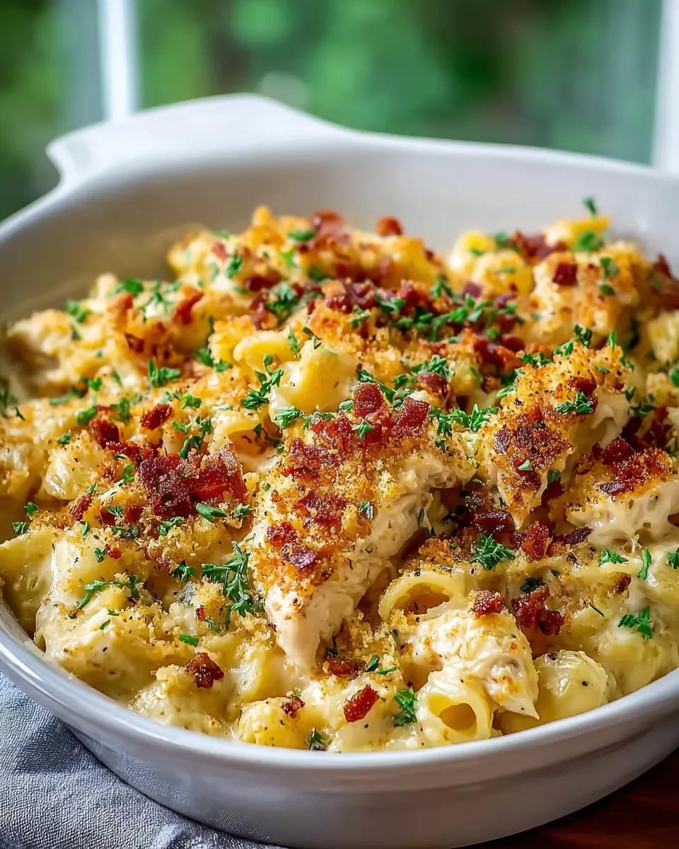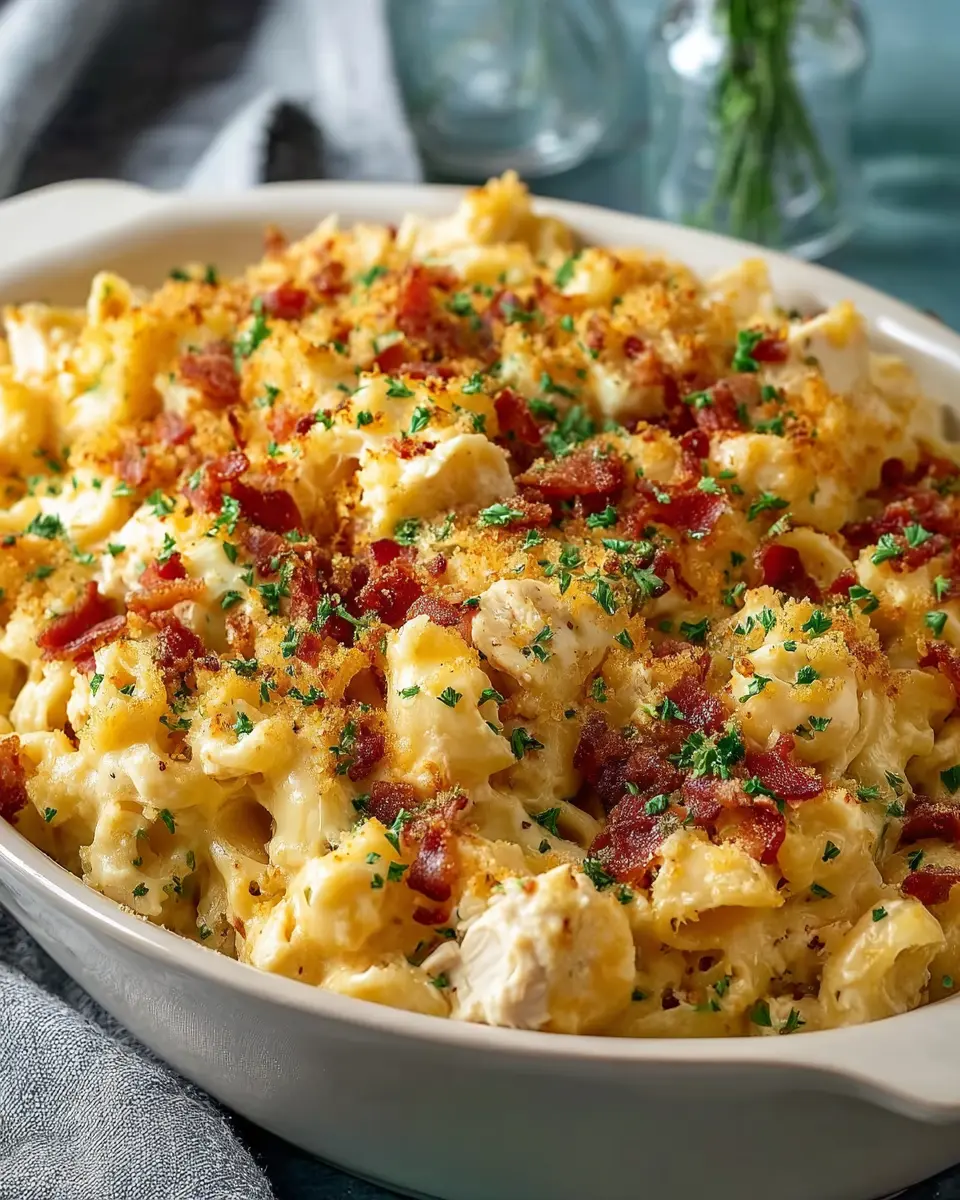 What sets this dish apart is its unbeatable combination of flavors and textures. Imagine the richness of creamy cheddar cheese melting into perfectly cooked pasta, accented by zesty ranch flavors and the savory satisfaction of chicken and turkey bacon. Not only does it warm your heart, but it also makes for amazing leftovers that taste just as good the next day.