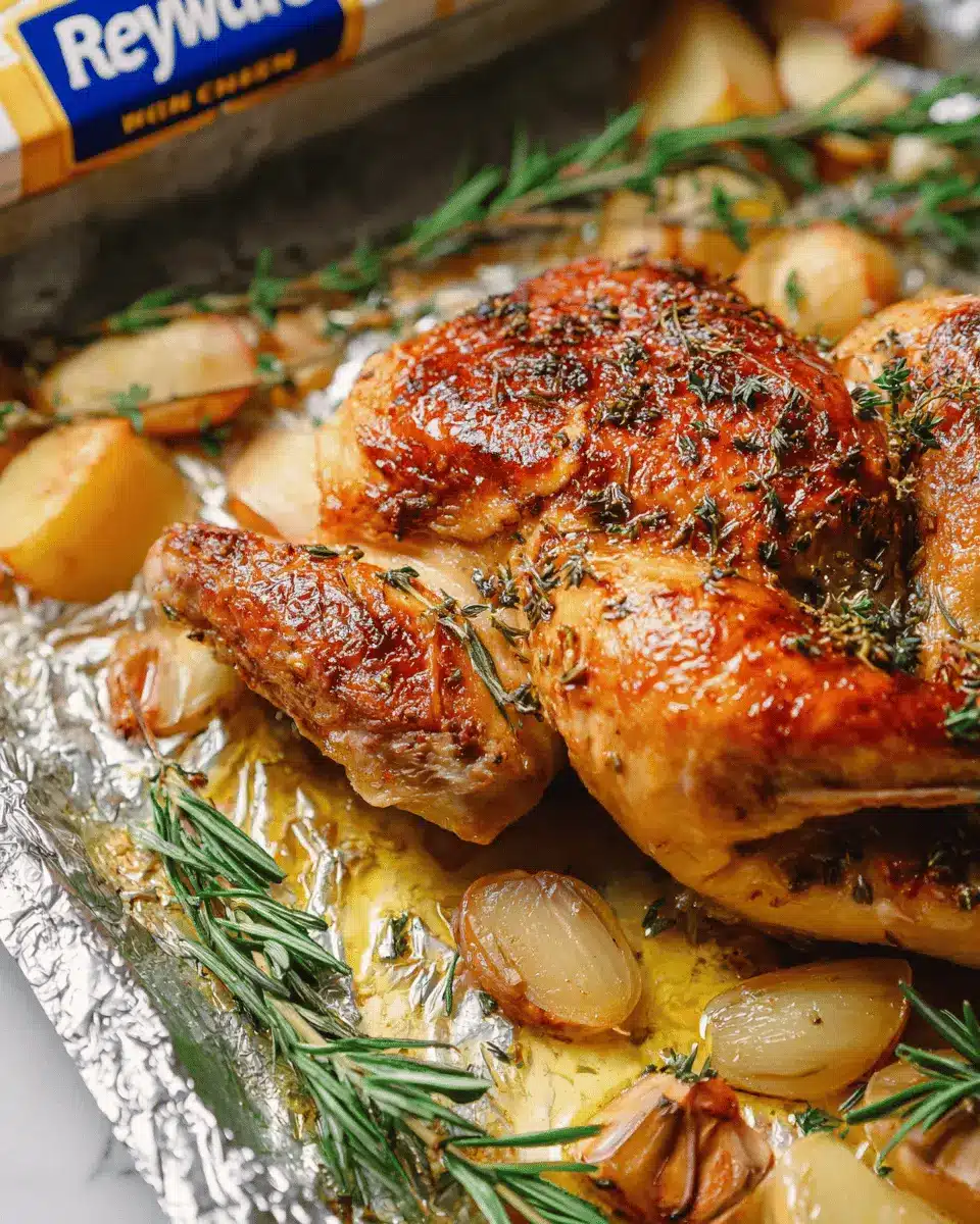 Start by preheating your oven to 400°F/204°C. This step is crucial for ensuring your chicken roasts evenly and achieves that perfect golden skin. While the oven heats, take a large casserole dish and line it with Reynolds Wrap® Heavy Duty Foil. This not only makes cleanup a breeze but also keeps your chicken moist as it cooks. If you want to learn more about the magic of foil in cooking, you can check out Reynolds Kitchens.