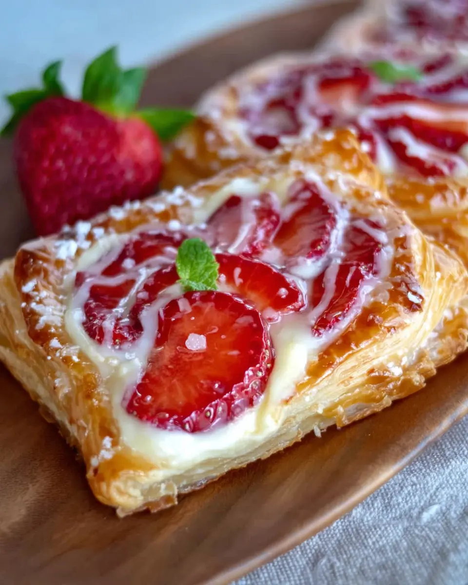 Absolutely! Fresh strawberries will work perfectly in this easy strawberry cream cheese danish recipe. Just slice them up and sprinkle with a little sugar to enhance their sweetness. The juicy, fresh flavor will really shine through, adding a delightful taste to your danishes.