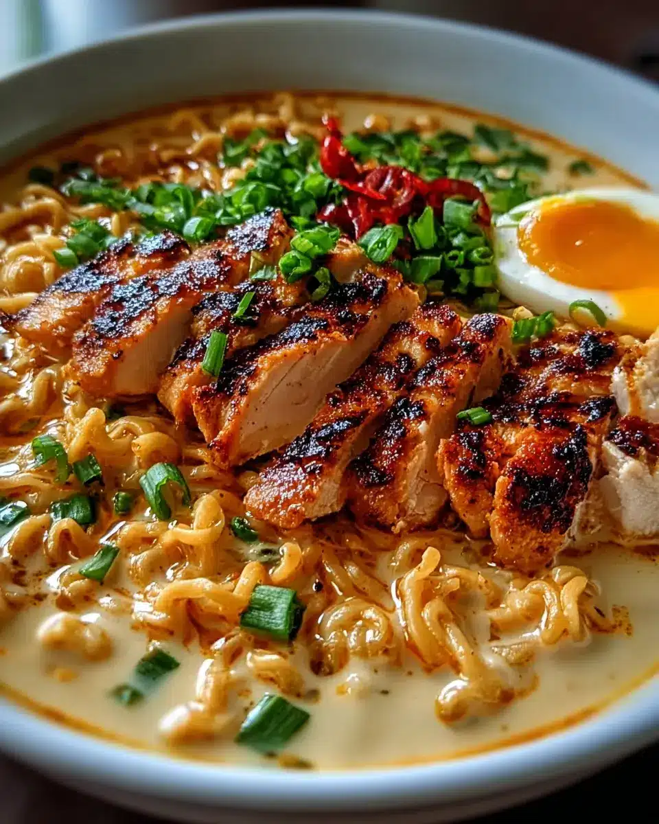 When you're in need of a meal that warms both your belly and your spirit, look no further than Fiery Chicken Ramen with Creamy Garlic Sauce. This dish seamlessly combines bold flavors with the comforting qualities of ramen, making it a must-try for homemade meals. You get a delightful balance of spice from the seasoned chicken and a rich, velvety sauce that coats the noodles perfectly. It’s an easy-to-make recipe that transforms ordinary ingredients into an extraordinary dining experience right at home.