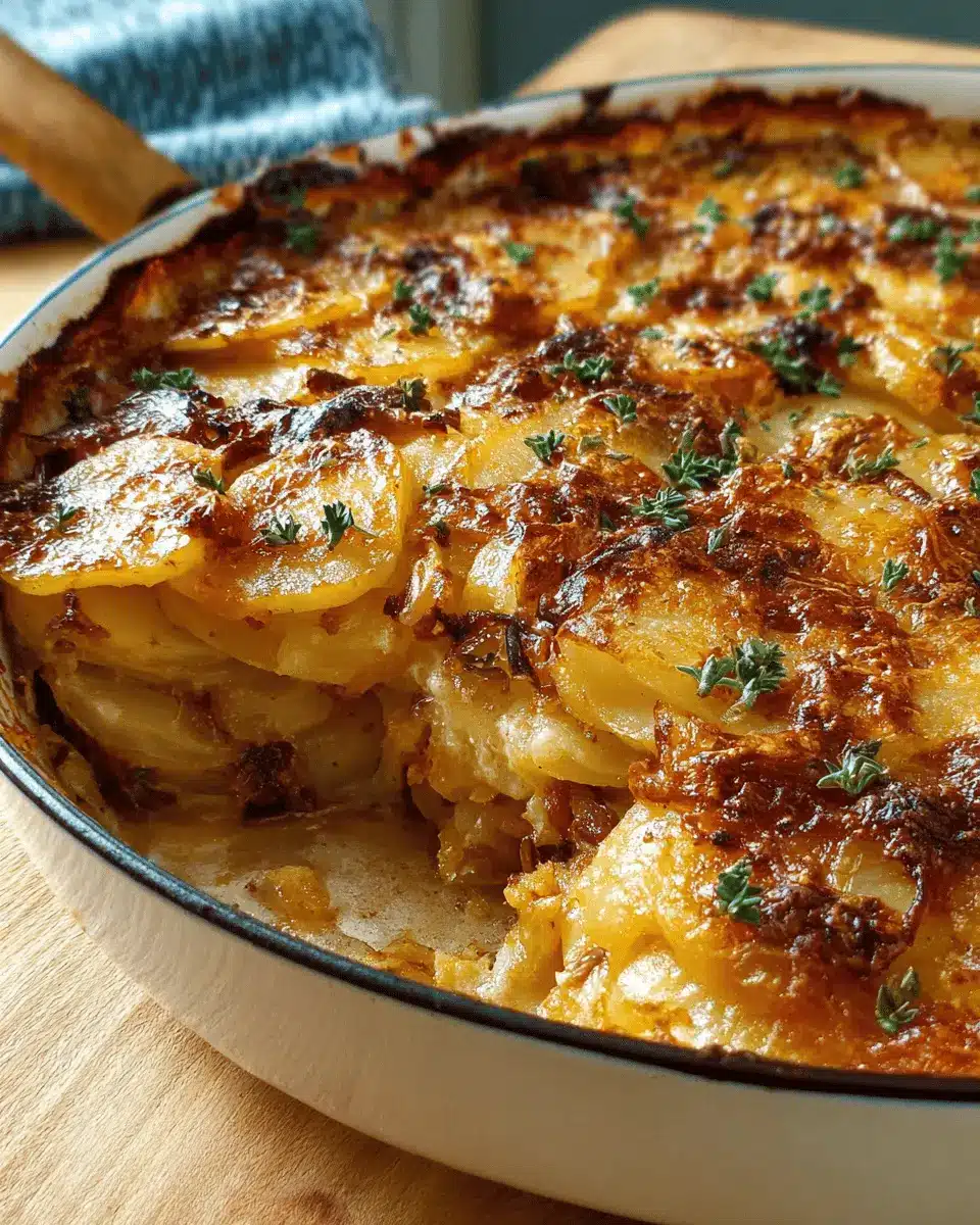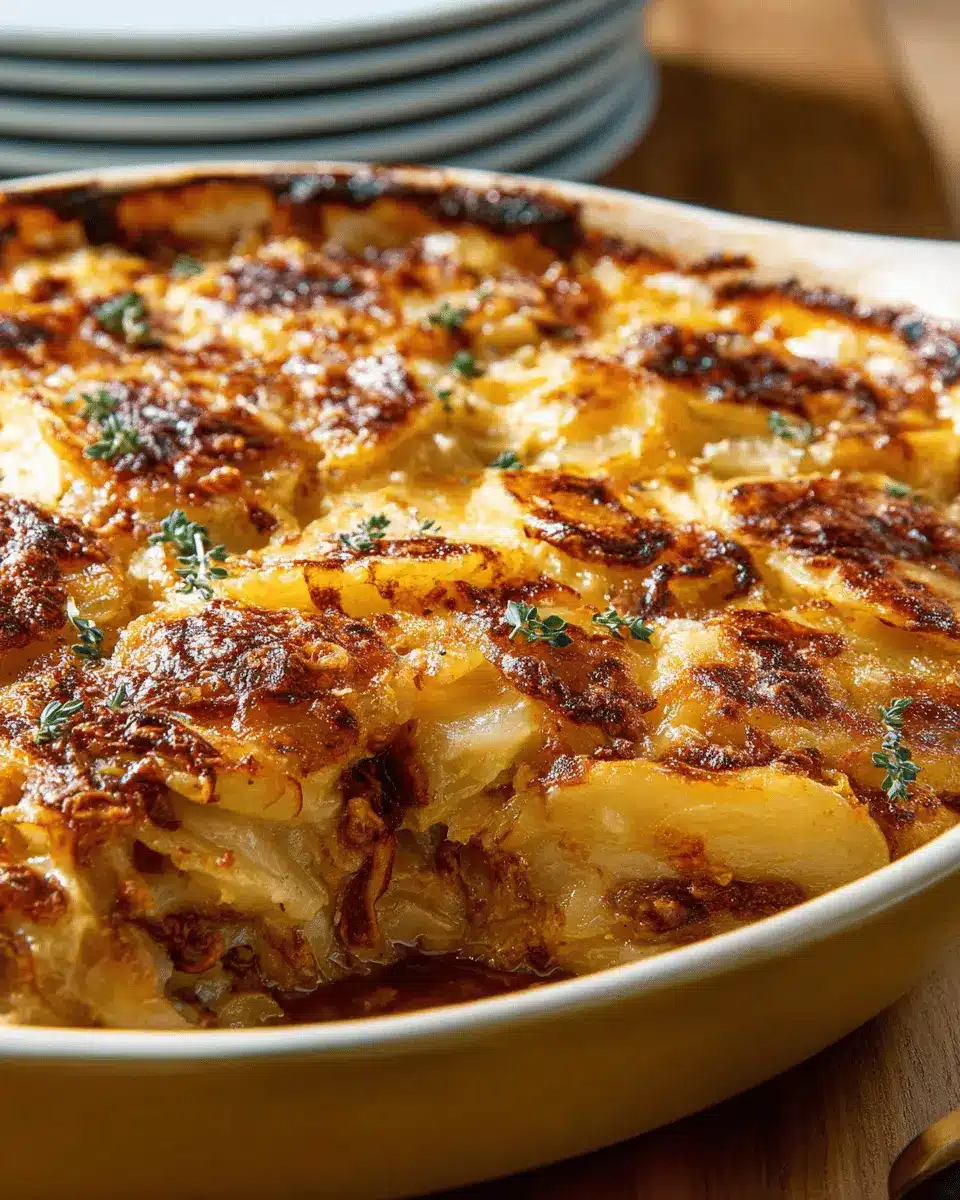 - Layer Wisely: Alternate layers of potatoes and caramelized onions. The onions not only add rich flavor but also help keep everything moist.