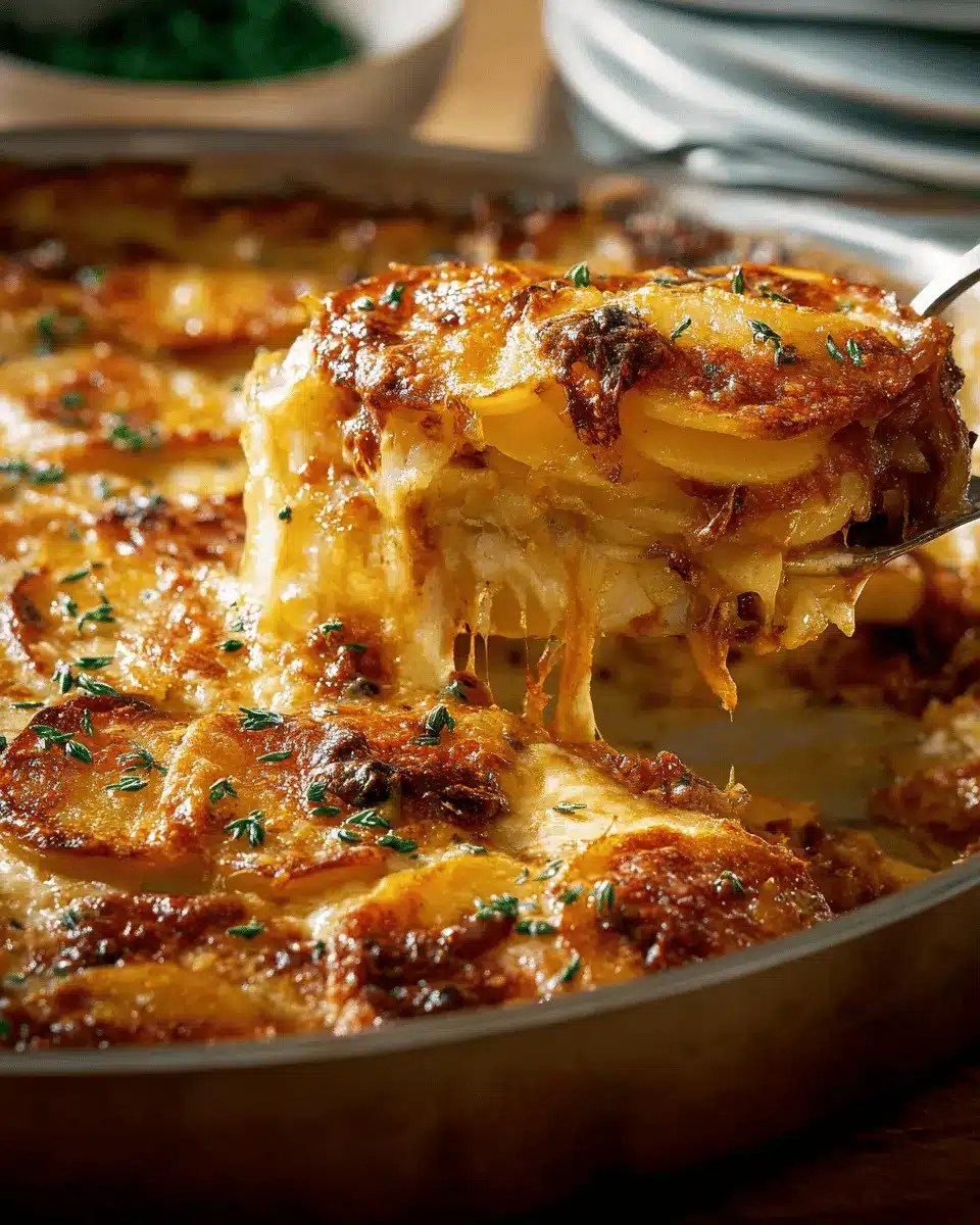 For leftover French Onion Potatoes au Gratin, let them cool completely before transferring to an airtight container. They’ll stay fresh in the fridge for up to 3 days. Reheat portions in the microwave or oven, adding a splash of milk if needed to keep them creamy. Enjoy your cheesy goodness again!