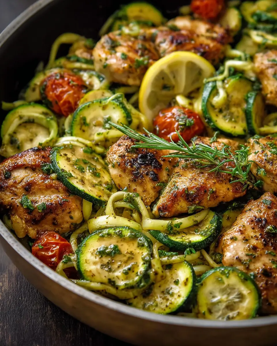 This easy one-pan dish is not only quick to prepare but also bursts with fresh flavors thanks to the vibrant herbs, zesty lemon, and tender chicken. The zucchini noodles serve as a delightful alternative to traditional pasta and are a fantastic way to sneak in more veggies—perfect for busy young professionals looking to maintain a balanced diet.