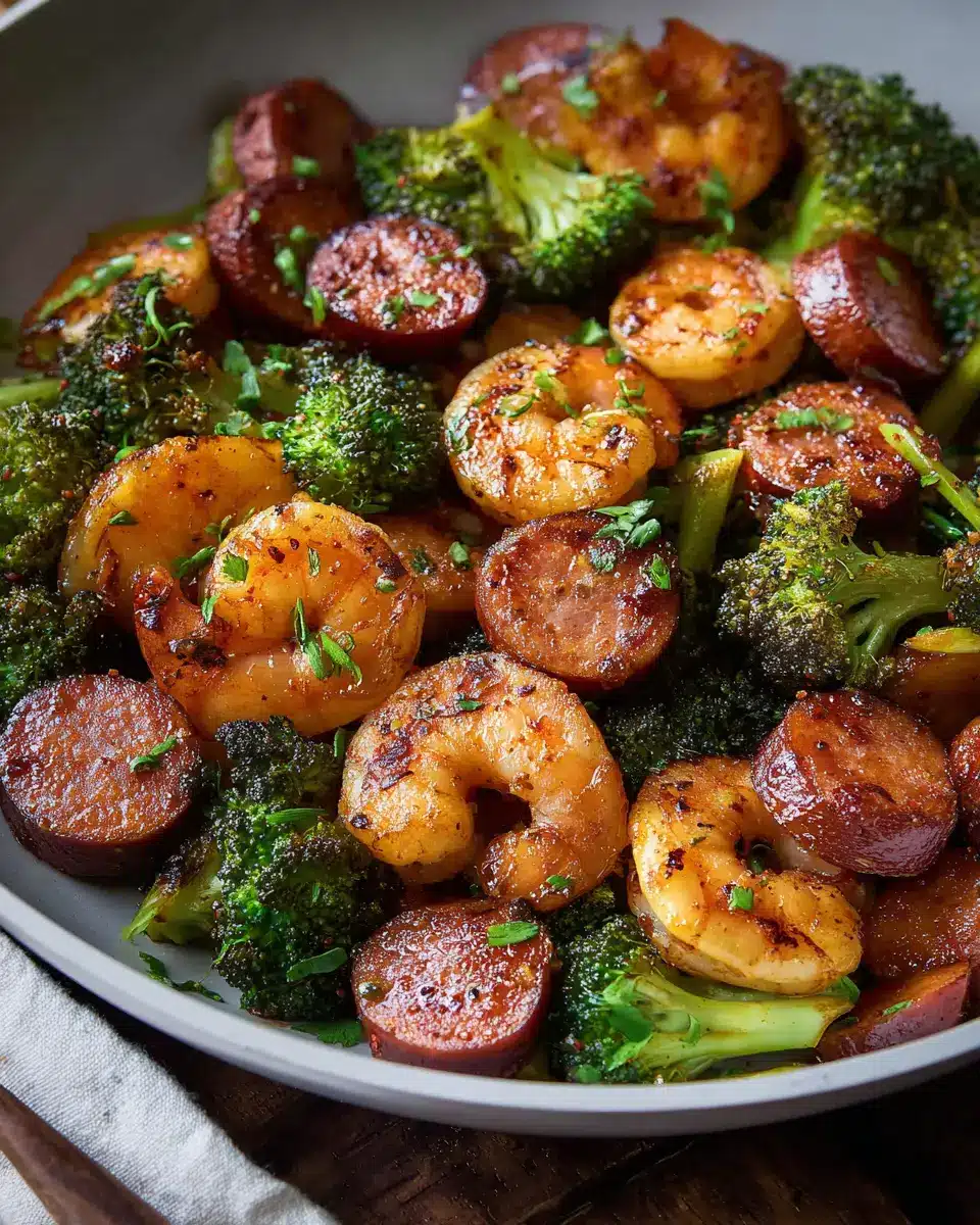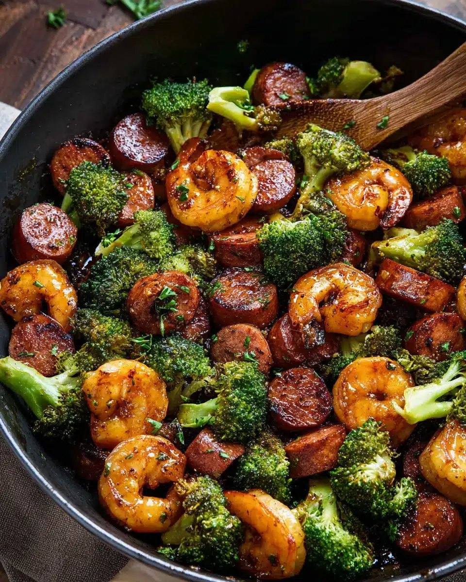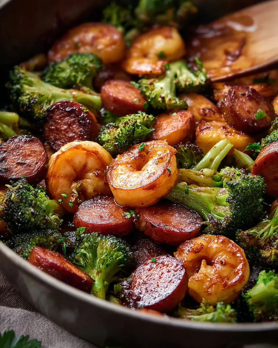 Honey Garlic Shrimp, Sausage, and Broccoli