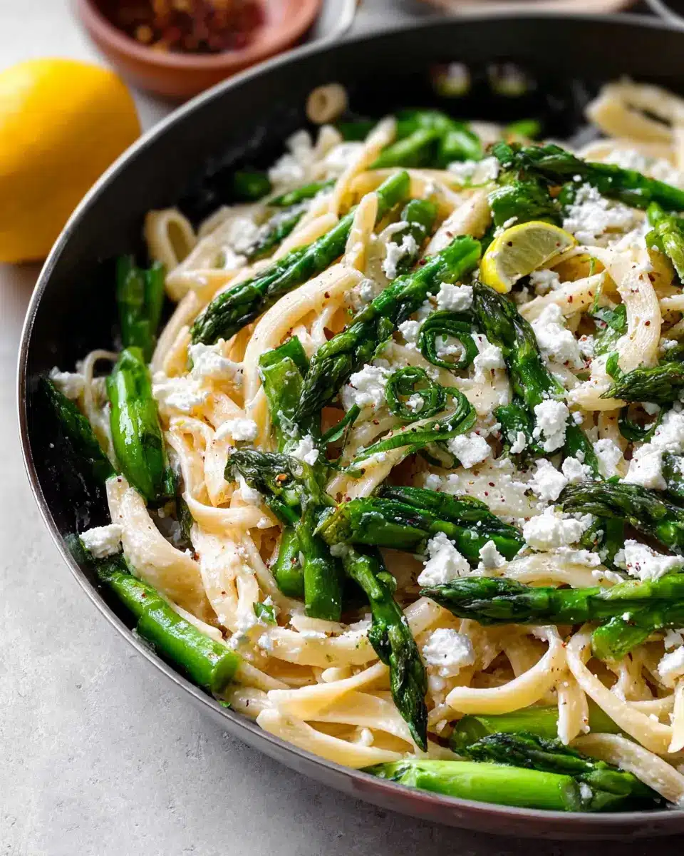 Going vegan is easy! Replace the Greek yogurt and feta with vegan yogurt and dairy-free cheese. You can also blend silken tofu with lemon juice and herbs for a nice creamy consistency. This way, you can still relish the delightful flavors of Lemon Asparagus Pasta with Feta while sticking to your plant-based lifestyle!