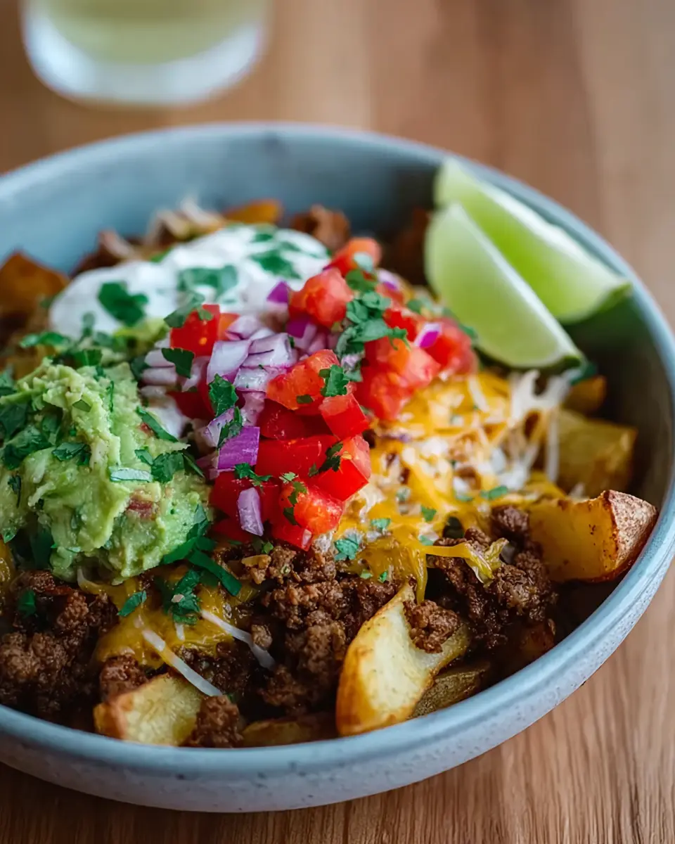 Planning ahead? The components of your loaded potato taco bowl freeze beautifully! Prepare the crispy potatoes, and let them cool before placing them in an airtight container. When you're ready to enjoy, simply reheat in the oven at 200°C (400°F) for about 10-15 minutes for that delicious crunch. For the beef mixture, it can be stored in the fridge for up to three days or frozen for up to three months. Just reheat on the stovetop!