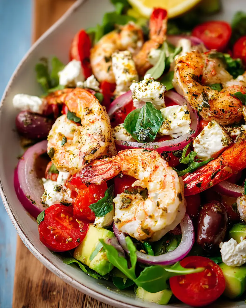 Whether you're looking for a light lunch or a refreshing dinner, this salad fits the bill perfectly. Its vibrant mix of shrimp, fresh veggies, and zesty dressing makes it satisfying without being heavy. For an added touch, consider pairing it with sparkling water infused with lemon or cucumber for a refreshing drink option. Have you tried this? You'll love how it complements the salad’s delightful Mediterranean flavors!