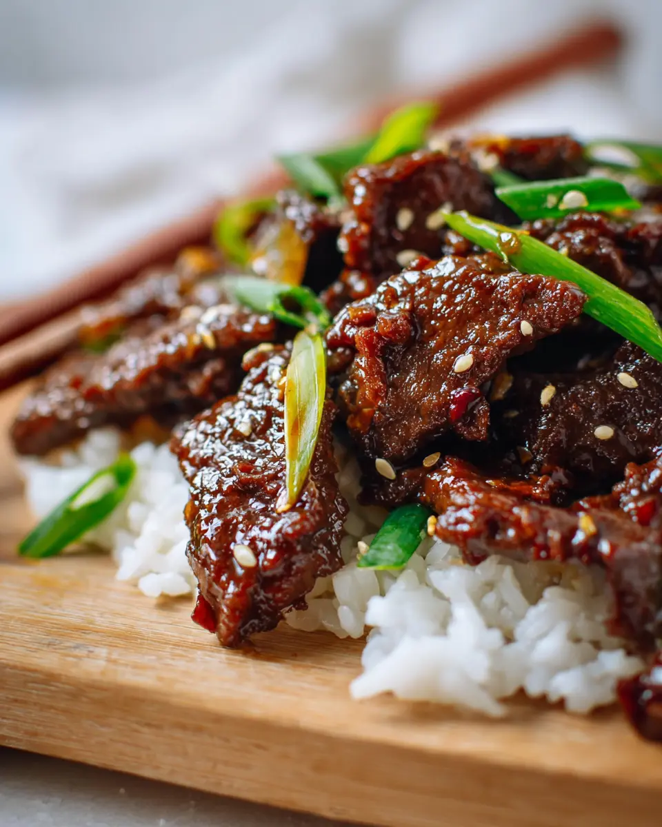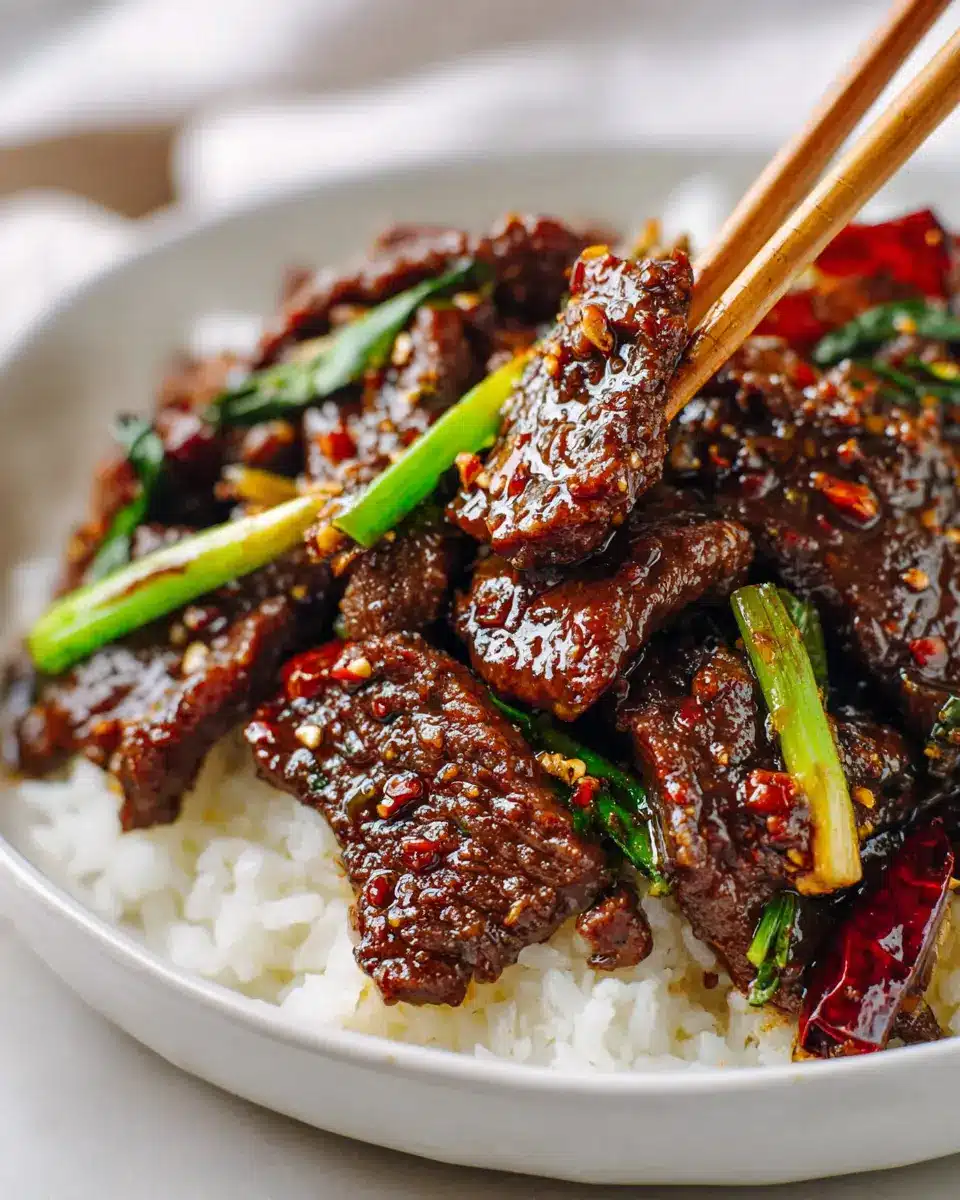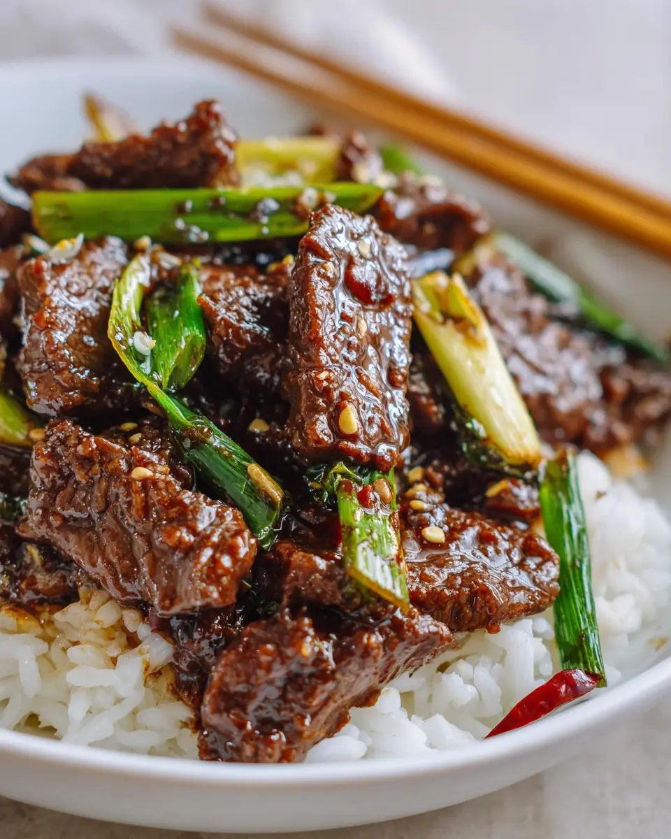For an eye-catching presentation, serve your Mongolian Beef in a large, shallow bowl. Garnish with fresh scallions or sesame seeds for a pop of color. Pair it with a small side of pickled vegetables to add a refreshing contrast. Don't forget to use chopsticks for an authentic touch!
