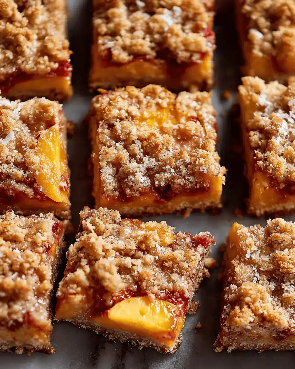 In summary, Peach Crumble Bars are a delightful way to enjoy fresh fruit with a comforting, buttery topping. Perfect for any occasion, these bars are sure to impress family and friends. Give this recipe a try and savor the sweet, gooey goodness that will have everyone coming back for seconds!