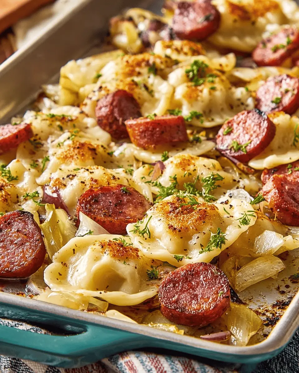 Creating the perfect pierogi and kielbasa sheet pan dinner begins with a simple yet flavorful selection of ingredients. Here's what you'll need: