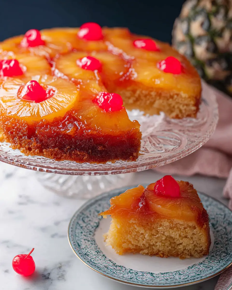 Pineapple Upside Down Cake is a delightful dessert that perfectly marries a nostalgic charm with a modern touch. What makes this cake stand out is its stunning presentation: a caramelized layer of golden pineapple slices and bright red cherries that float on top when you flip it over. The visual appeal alone makes it a showstopper for any gathering, whether it’s a casual dinner or a special event.