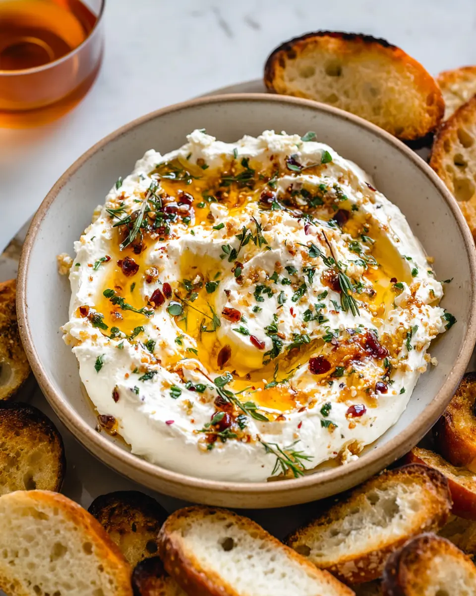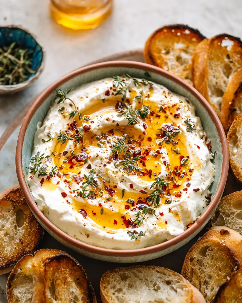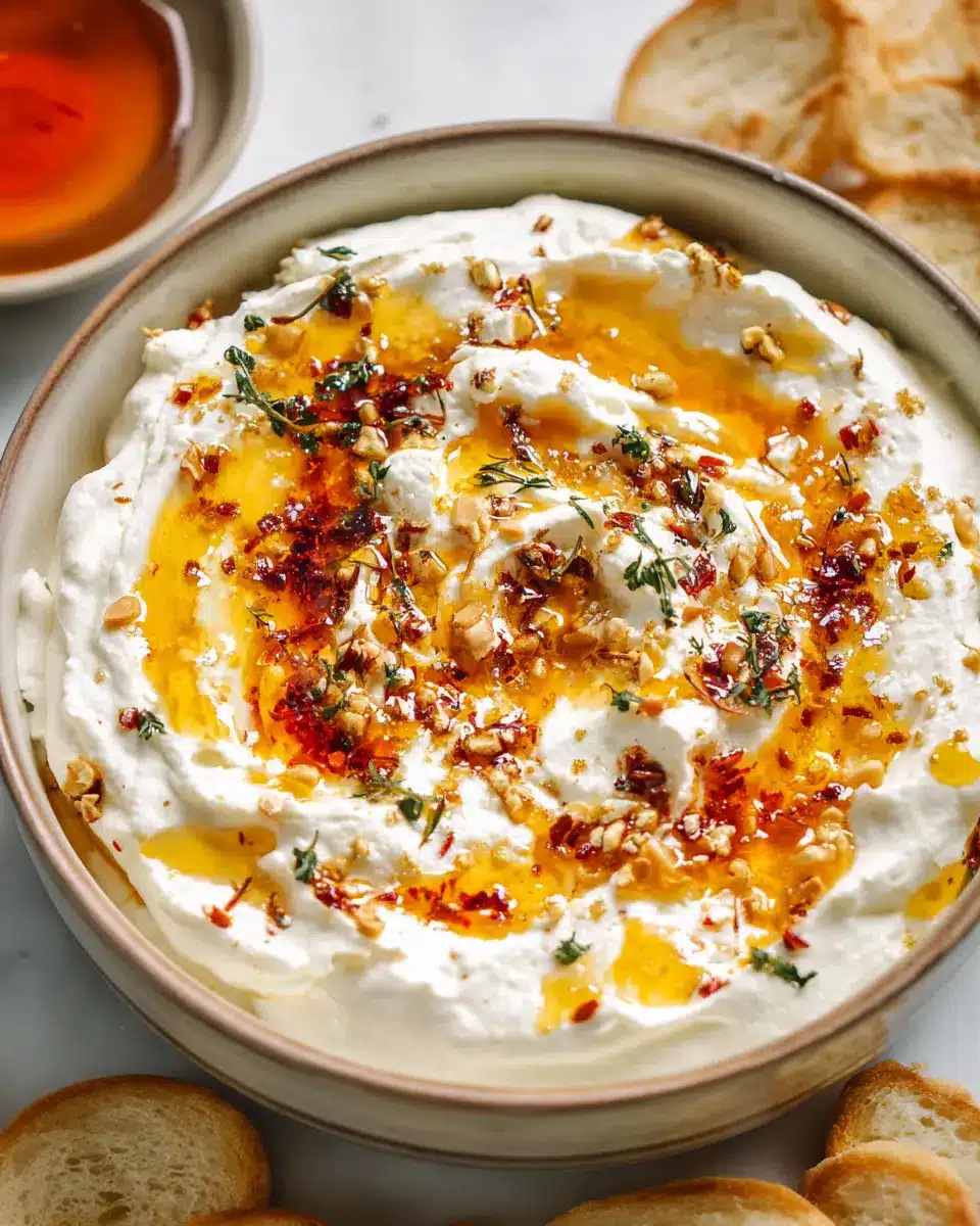 Quick Whipped Ricotta Dip with Hot Honey Appetizer