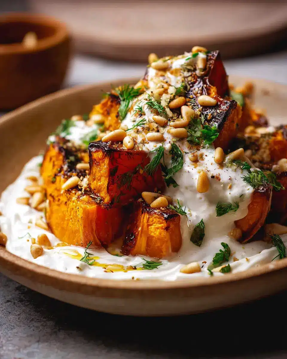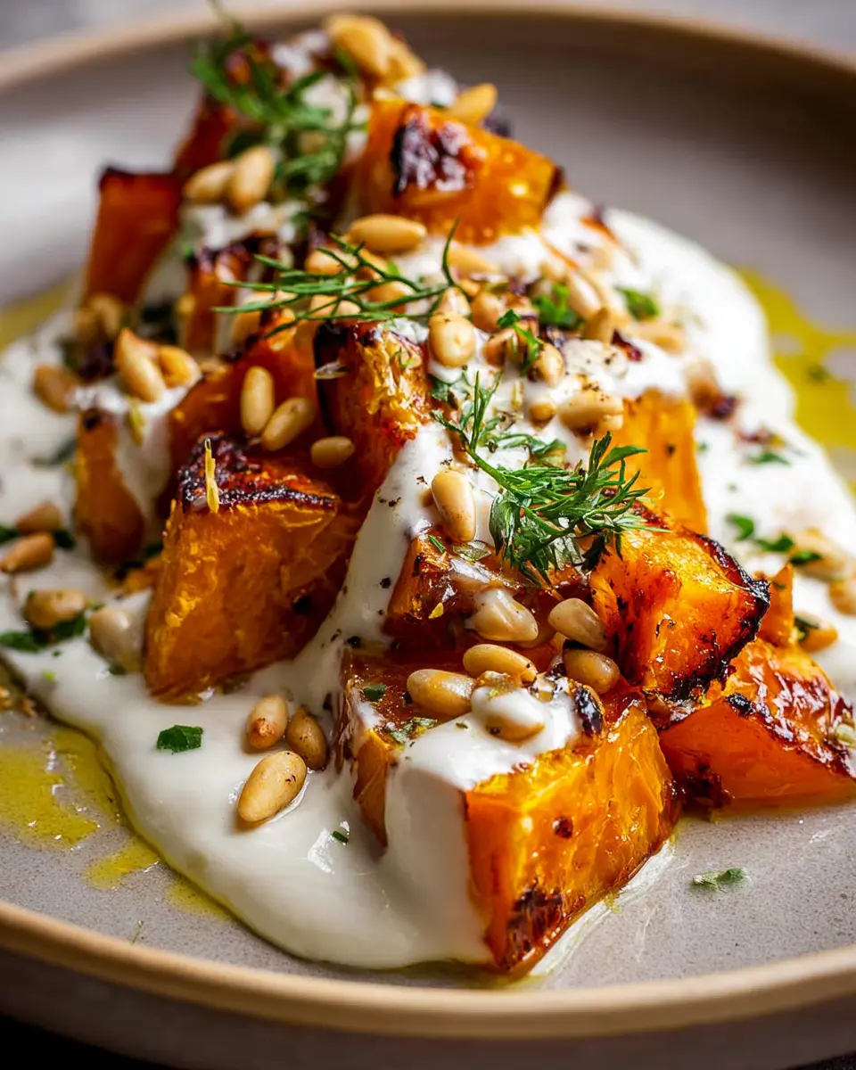 In summary, Roasted Pumpkin with Yogurt Sauce and Pine Nuts embodies comfort and versatility. This dish not only offers a deliciously warm experience but also caters to various dietary preferences. Ideal for gatherings or cozy nights in, it’s simple, nutritious, and sure to impress your guests! Don’t hesitate to experiment with different nuts and herbs. Enjoy!