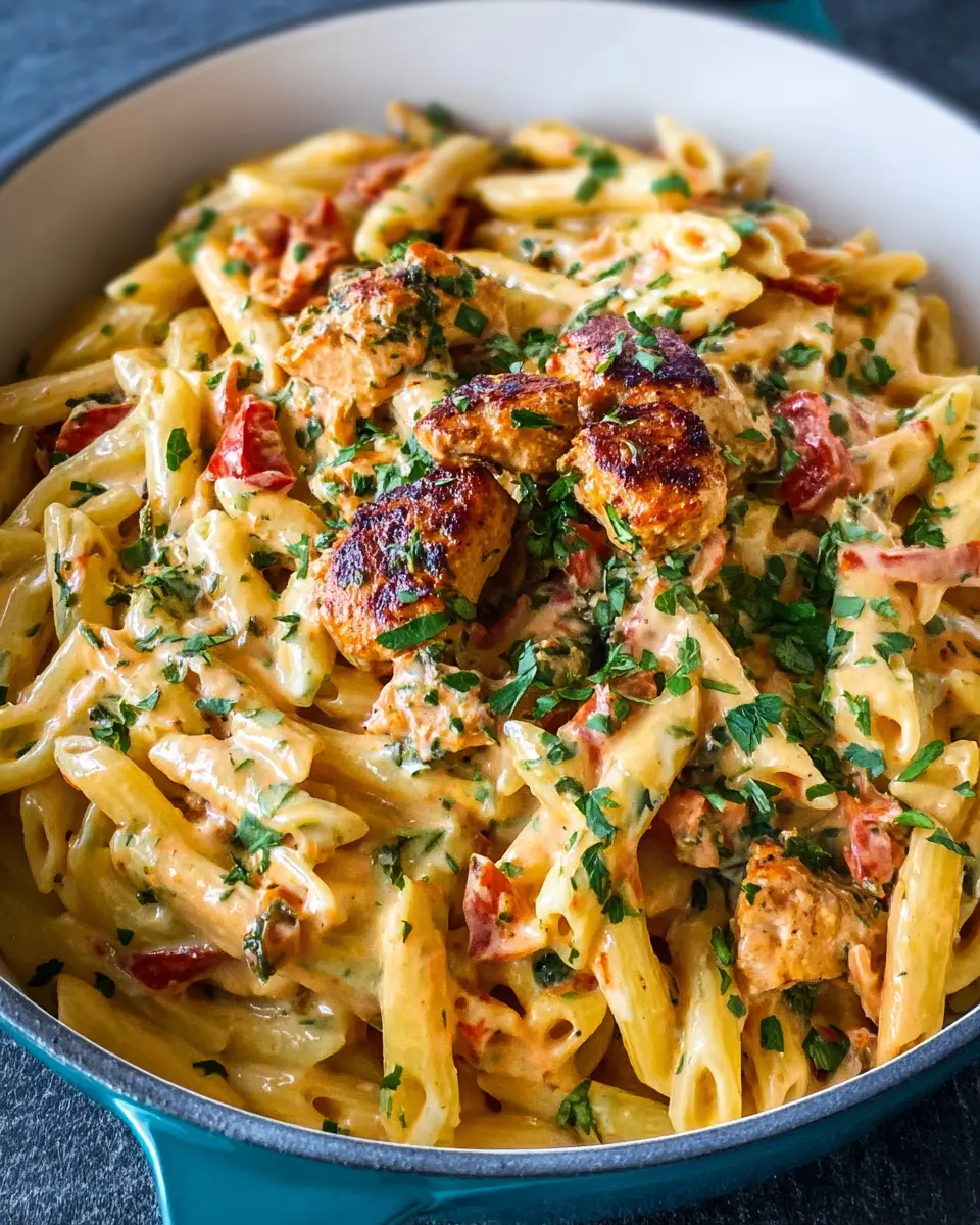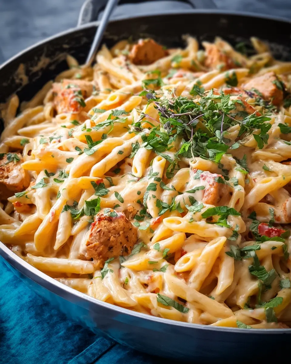 With your sauce ready, it’s time to bring it all together! Add your cooked penne pasta into the skillet and toss everything to ensure that every piece of pasta is coated in that rich, creamy sauce. Allow it to sit for a couple of minutes to thicken a bit. Before serving, stir in chopped cilantro for a fresh touch. Enjoy your homemade southwest chicken alfredo—it’s sure to become a favorite!