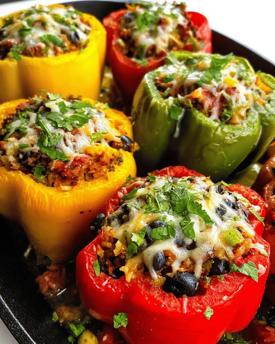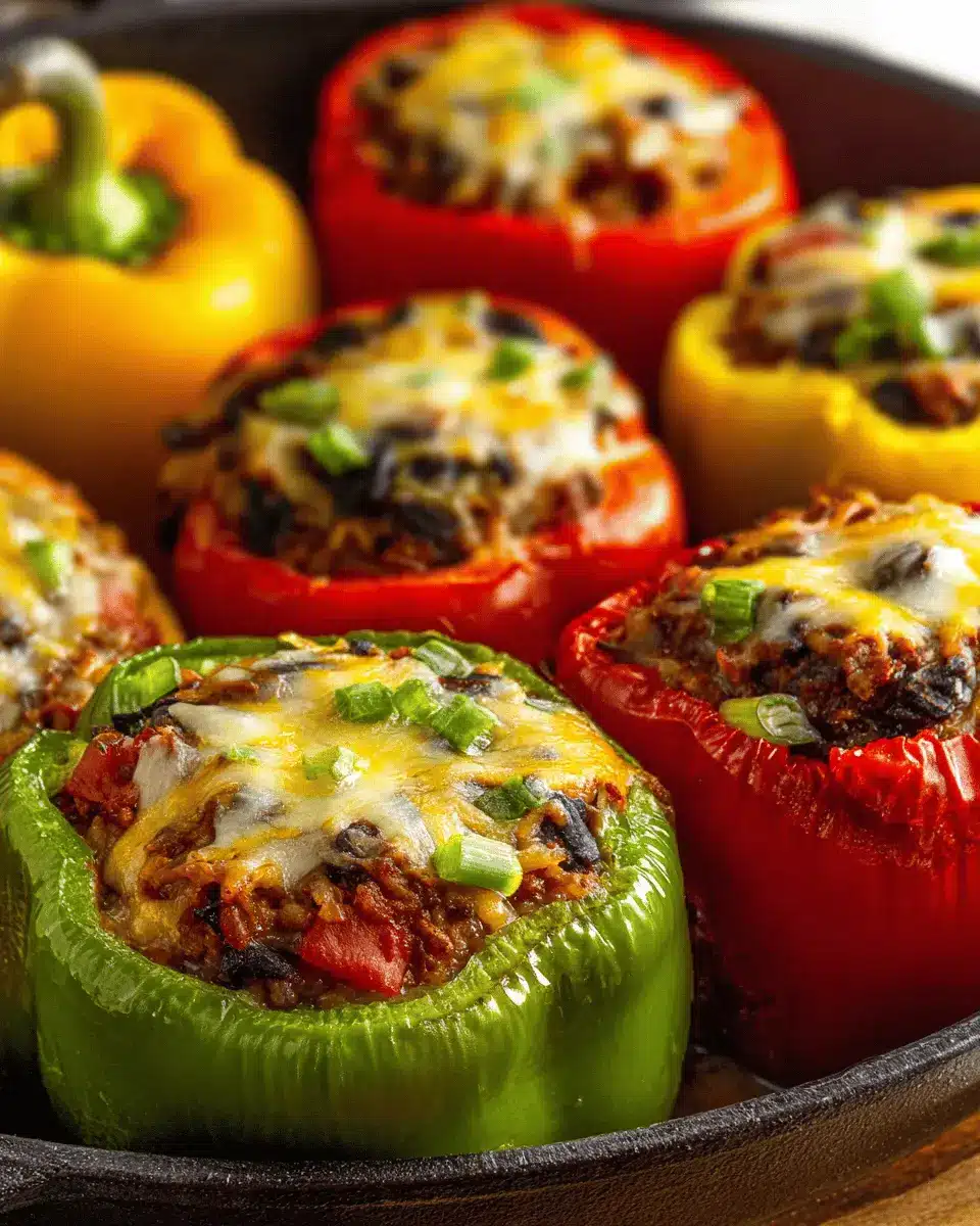 To make your stuffed peppers a complete meal, consider pairing them with fresh sides. A crisp green salad dressed with citrus vinaigrette adds brightness. You might also enjoy them alongside guacamole and tortilla chips for a fun twist. For a heartier option, serve with cilantro-lime rice or quinoa, which complements the flavors beautifully.