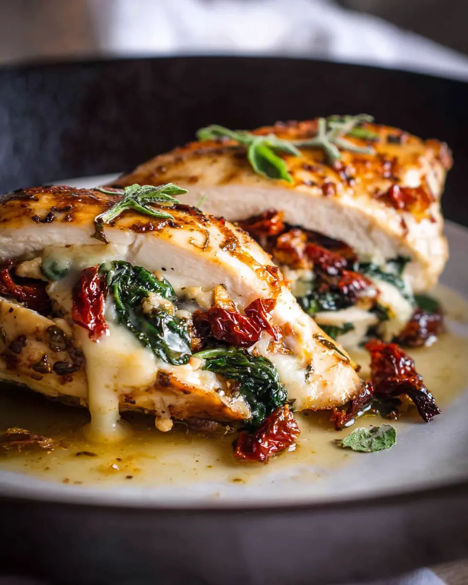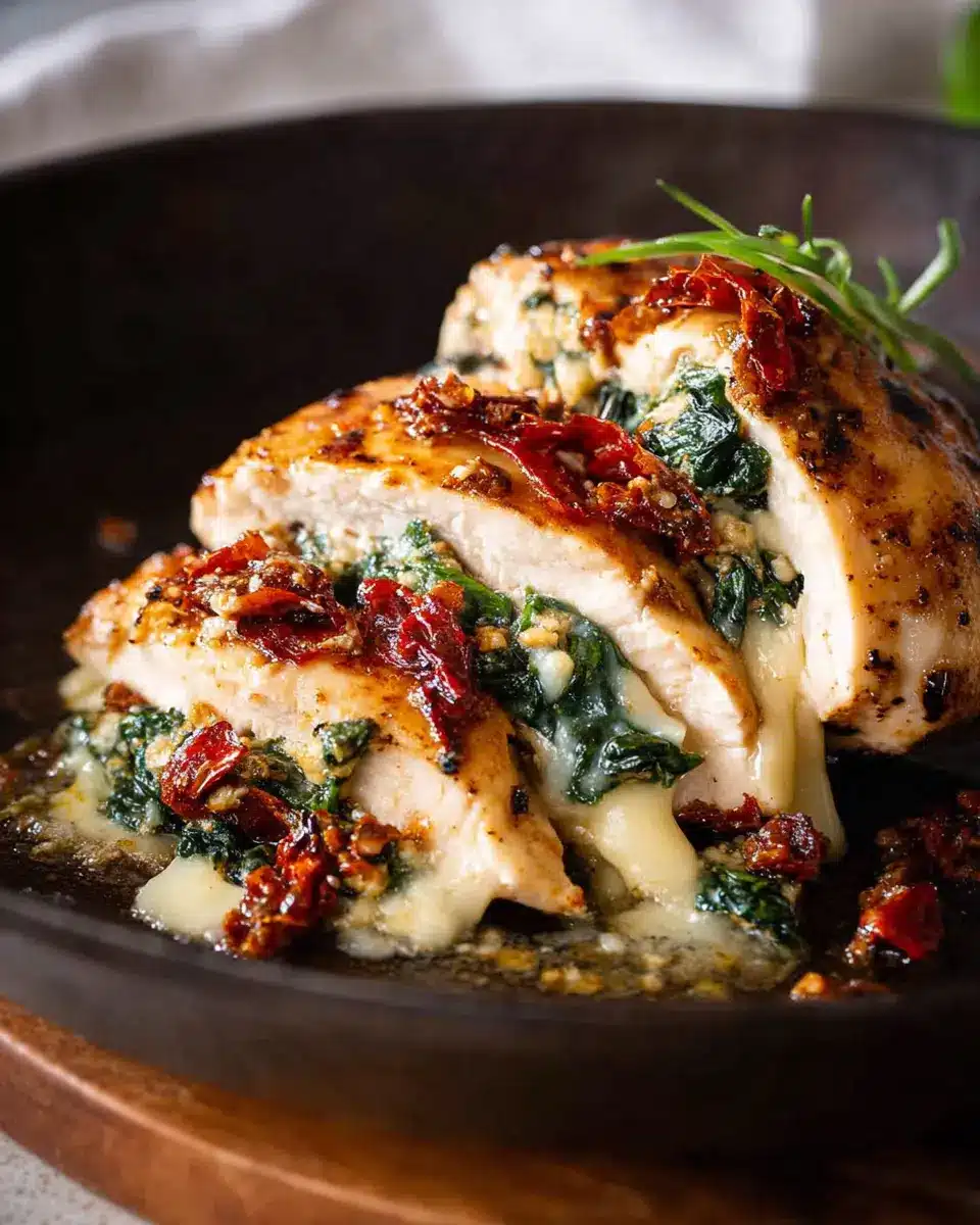 Sun Dried Tomato, Spinach & Cheese Baked Stuffed Chicken Breast