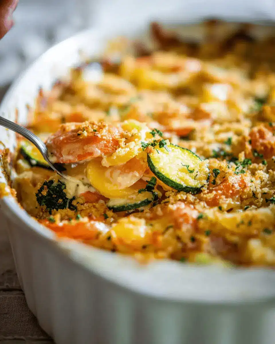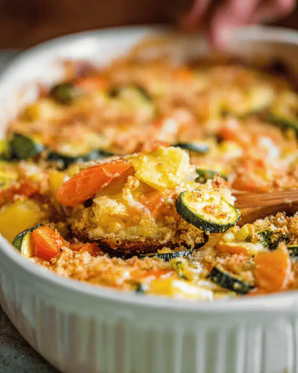 The vegetable casserole is a nostalgic delight that brings warmth to any meal. Easy to prepare and packed with flavor, it’s the perfect side dish for gatherings or cozy weeknight dinners. Don’t forget to personalize it with your favorite veggies and sauces! Enjoy this hearty, cheesy comfort food!