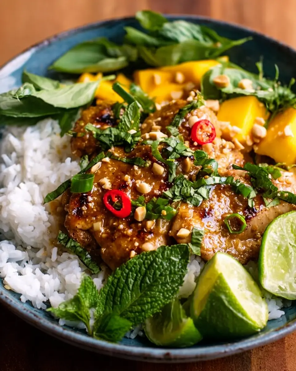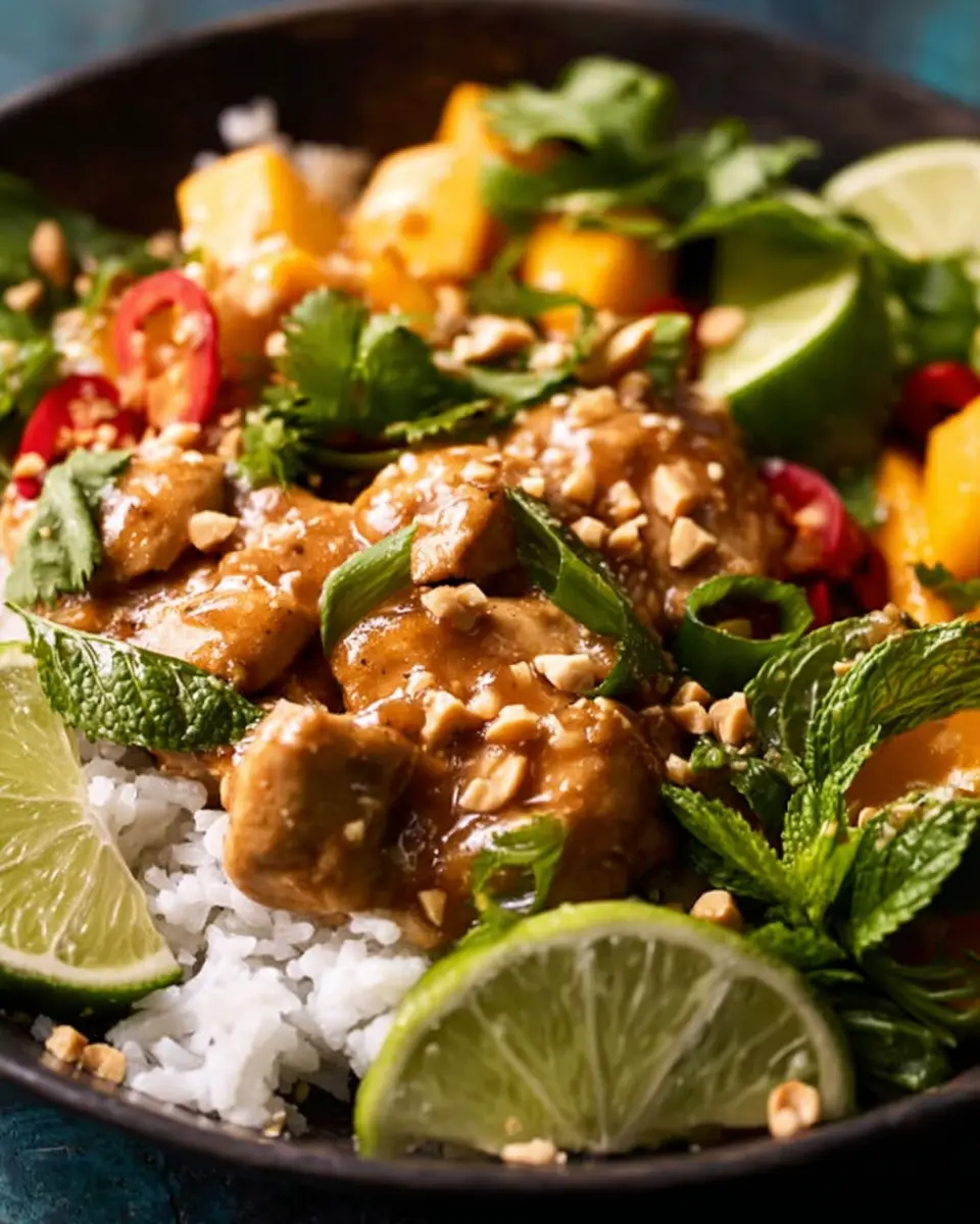 Weeknight Thai Peanut Chicken with Spicy Lime Mango