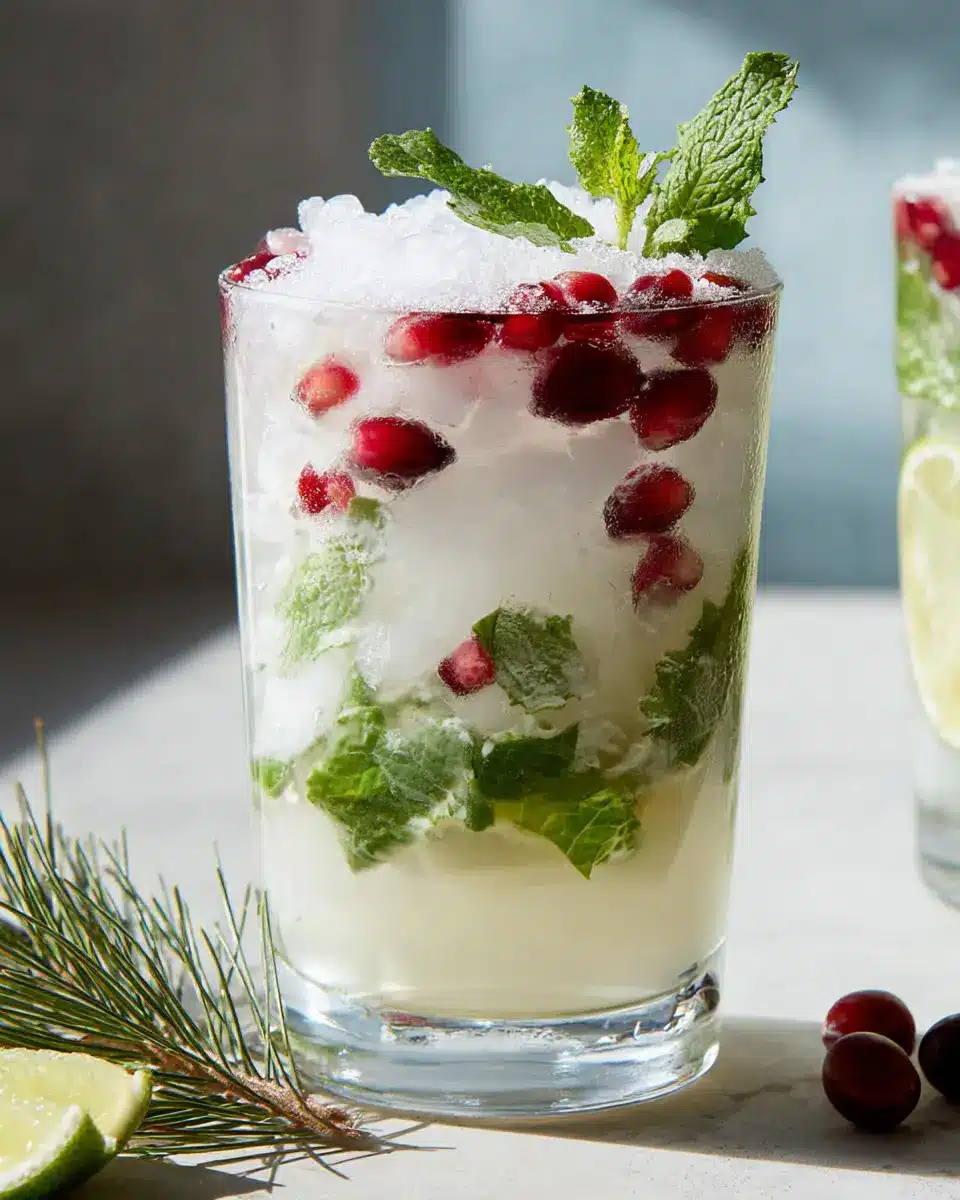 For that refreshing sparkle, it’s time to add some seltzer. Pour it over the top liberally, and watch your mojito come to life! Finally, for that extra festive touch, garnish with a mint sprig and a handful of pomegranate seeds. These add a pop of color and a bit of tartness that beautifully complements the White Christmas Mojito.
